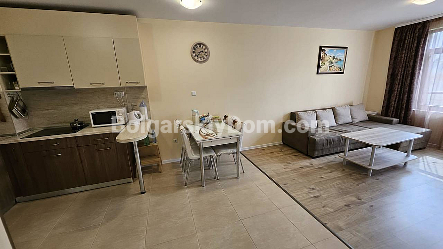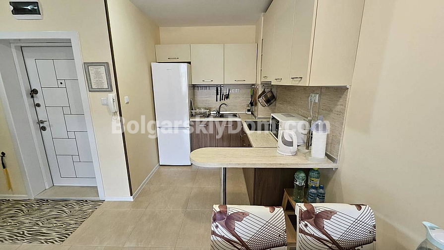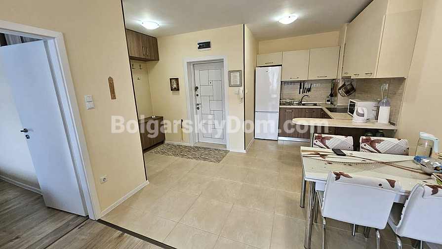 Zespół agencji Bolgarskiy Dom znalazł dla Ciebie idealną ofertę z rzadkim połączeniem zalet: bliskość morza, gotowe do zamieszkania wnętrze i śmiesznie niska roczna opłata! Prezentujemy przytulne mieszkanie o powierzchni 59 m² w kompleksie Aivazovsky Park w Pomorie. Mieszkanie znajduje się na trzecim piętrze, posiada przemyślany układ i nowoczesne wykończenie. Czeka tu na Ciebie przestronny salon z dużą rozkładaną sofą oraz w pełni wyposażona kuchnia: kuchenka, okap, kuchenka mikrofalowa i dużo miejsca do przechowywania są już zainstalowane. W cenę wliczone są wysokiej jakości meble i sprzęt AGD, a duże okna wypełniają wnętrze w spokojnych tonach naturalnym światłem. Mieszkanie jest całkowicie gotowe do zamieszkania!