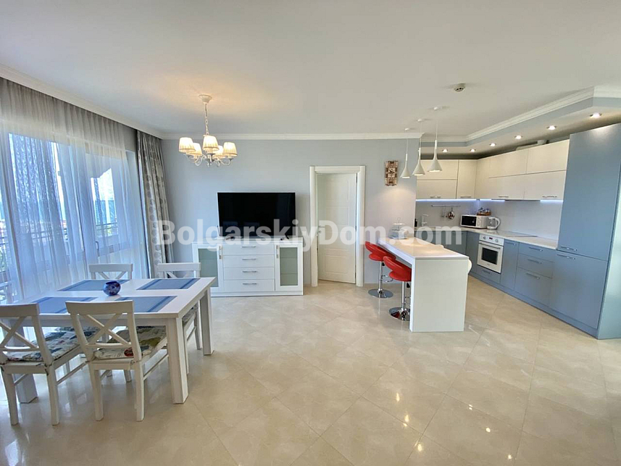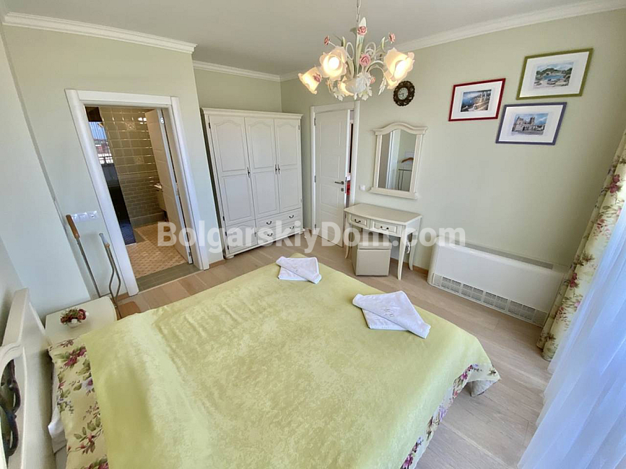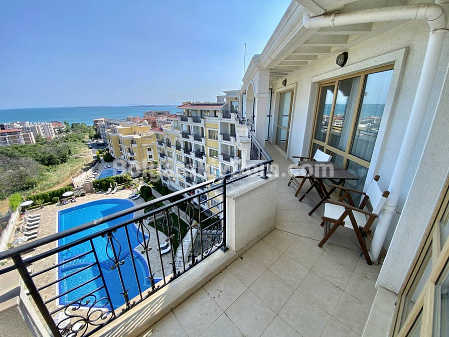 W katalogu firmy Bolgarskiy Dom pojawiła się ekskluzywna oferta, która zachwyca rozmachem i prestiżową lokalizacją. Oferujemy trzypokojowe mieszkanie w elitarnym kompleksie Villa Florence w Świętym Własie z oszałamiającym widokiem na morze! Apartament znajduje się na szóstym piętrze, a jego całkowita powierzchnia wynosi 158,34 m² (w tym otwarty taras 40,5 m²). Układ obejmuje przedpokój, salon z aneksem kuchennym, dwie sypialnie oraz dwie łazienki z włoską ceramiką. Dzięki południowej ekspozycji mieszkanie jest zawsze pełne światła. Z tarasu rozciąga się malowniczy widok na zielone wzgórza gór Stara Płanina, oprócz widoku na morze. Mieszkanie sprzedawane jest z wysokiej jakości meblami i sprzętem AGD oraz wyposażone jest w szybki internet.