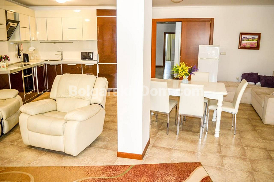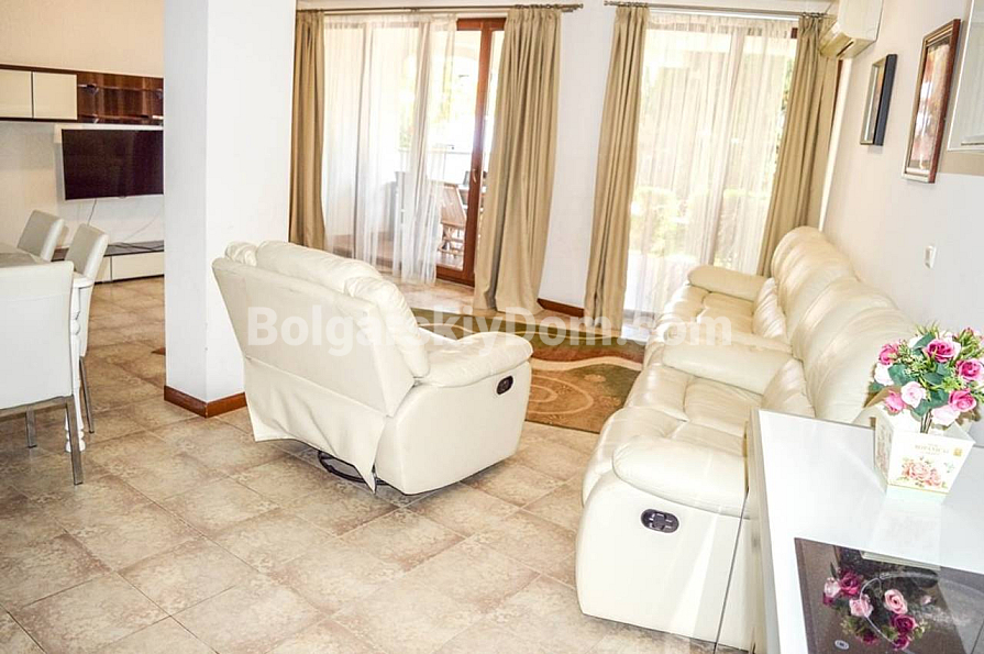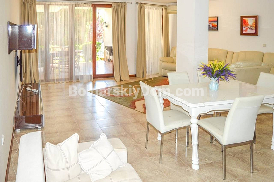 Firma Bolgarskiy Dom przygotowała wyjątkową ofertę, którą można porównać z posiadaniem willi tuż nad morzem! W ekskluzywnym kompleksie wypoczynkowym Casa Real w Świętym Własie na sprzedaż jest wspaniałe, w pełni umeblowane czteropokojowe mieszkanie z trzema sypialniami o łącznej powierzchni 200 m². To pierwsza linia – plaża znajduje się dosłownie 50 metrów od progu. Apartament położony jest na parterze i oferuje wyjątkowe udogodnienia: trzy łazienki, garderobę/schowek oraz dwa prywatne patia z własnymi ogródkami. Pokoje są bardzo przestronne, jasne, stylowo urządzone nowoczesnymi meblami, a w każdym z nich zainstalowana jest klimatyzacja. Mieszkanie jest w doskonałym stanie i całkowicie gotowe do zamieszkania.