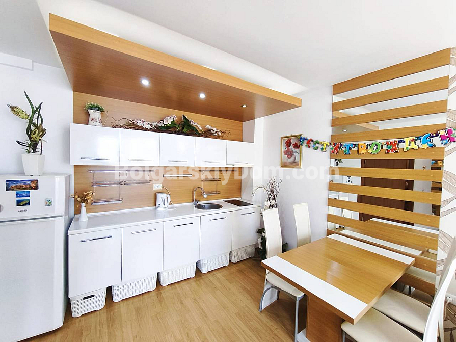 Nowość w aktualnym katalogu! Firma Bolgarskiy Dom oferuje doskonałą propozycję dla osób poszukujących idealnej równowagi między komfortem, infrastrukturą i jakością! Na sprzedaż jest dwupokojowe mieszkanie o powierzchni 63 m² w głównej fazie prestiżowego kompleksu mieszkalnego Sweet Home – w samym centrum Słonecznego Brzegu, w dzielnicy z doskonale rozwiniętą infrastrukturą. Apartament znajduje się na 4. piętrze w budynku z windą i jest w doskonałym stanie. Układ obejmuje przedpokój, salon z aneksem kuchennym, oddzielną sypialnię, łazienkę z kabiną prysznicową oraz balkon. Mieszkanie sprzedawane jest z wysokiej jakości meblami i sprzętem AGD. Zadzwoń — organizujemy prezentacje online i na miejscu!