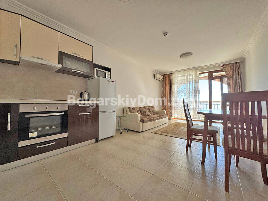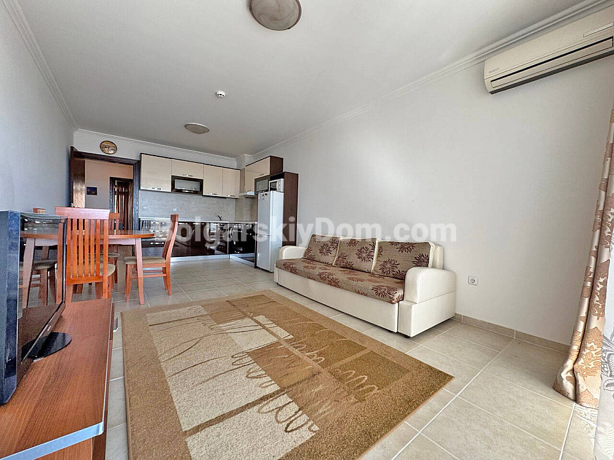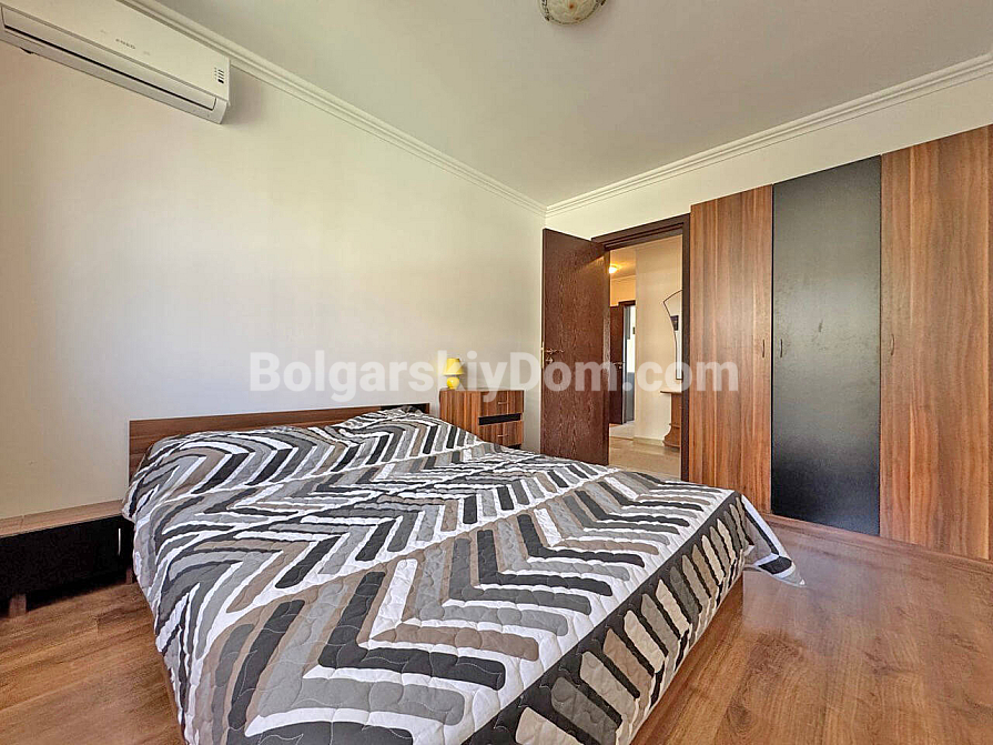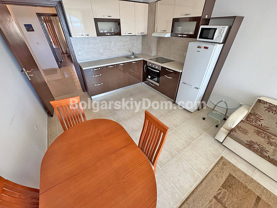 Nowość, która z pewnością znajdzie się wśród topowych ofert bieżącego katalogu! Biuro nieruchomości Bolgarskiy Dom prezentuje apartament o powierzchni 86 m², położony na drugim piętrze w kompleksie Caprice. Układ został idealnie zaplanowany dla dużej rodziny: przedpokój, dwie oddzielne sypialnie, salon połączony z kuchnią oraz, co najważniejsze, dwie pełne łazienki. Nieruchomość jest w pełni umeblowana, wyposażona w wysokiej klasy sprzęt AGD, a w pomieszczeniach zamontowano klimatyzatory. Kropką nad i są dwa balkony, z których jeden oferuje codzienny widok na morze i basen. Czekamy na Twój telefon!