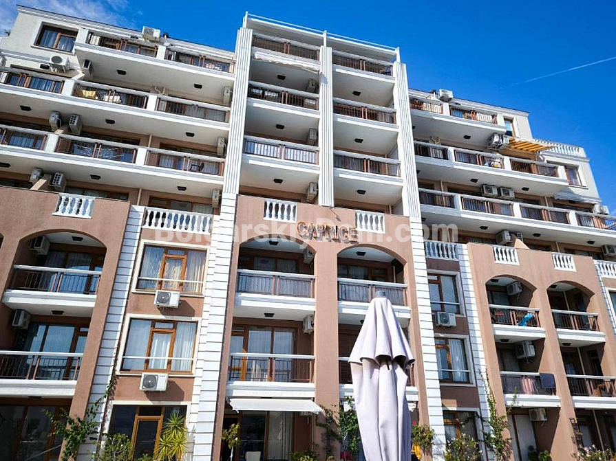 Sam kompleks Caprice to imponujący i estetyczny budynek położony w samym sercu kurortu. Do pięknej, piaszczystej plaży jest zaledwie 300 metrów – dystans przyjemnego spaceru. Wśród udogodnień dla komfortowego wypoczynku i całorocznego zamieszkania: odkryty basen, sklepy na terenie obiektu, całodobowa ochrona oraz, co szczególnie ważne w centrum miasta, podziemny parking. Aspekty prawne są bez zarzutu: kompleks posiada Akt 16, podłączone są standardowe taryfy mediów, a roczna opłata eksploatacyjna wynosi jedynie 12 euro za metr kwadratowy. To oferta dla osób, które nie chcą rezygnować ani z komfortu, ani z doskonałej lokalizacji.