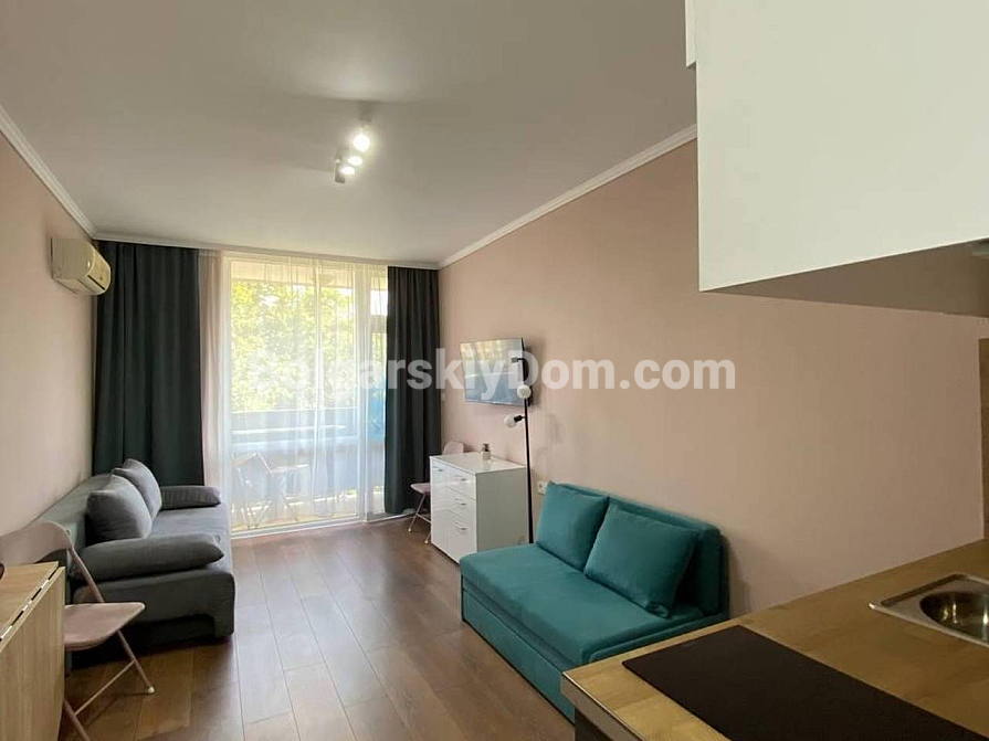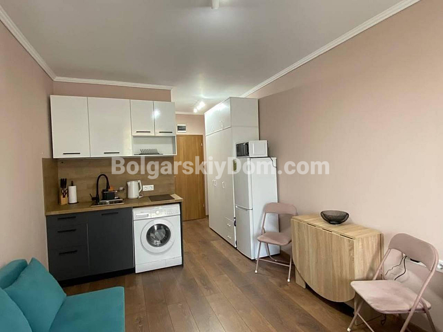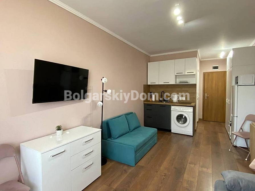 Szukasz idealnego, kompaktowego startu w Słonecznym Brzegu, bez potrzeby tracenia czasu na urządzanie? Firma Bolgarskiy Dom prezentuje studio o powierzchni 31 m², położone na piątym piętrze rodzinnego kompleksu Gerber 2. To mieszkanie to gotowe rozwiązanie — jest w pełni umeblowane i wyposażone w sprzęt AGD, więc klucze można wręczyć prosto na lotnisku. Układ jest funkcjonalny, a dzięki położeniu na wyższym piętrze w mieszkaniu jest zawsze jasno i cicho. Oczywiście budynek posiada windę.