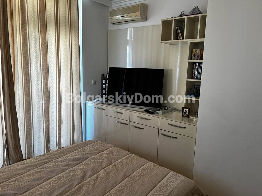 Witamy w luksusowym trzypokojowym apartamencie w pierwszej linii brzegowej w Świętym Własie! Firma Bolgarskiy Dom prezentuje przestronne mieszkanie w kompleksie Dolce Vita 2 o powierzchni użytkowej 116 m², położone na czwartym piętrze. Układ pomieszczeń jest idealny do zamieszkania: dwie sypialnie (jedna z nich urządzona jako przytulny gabinet), łazienka z prysznicem, osobna toaleta dla gości oraz duży salon połączony z kuchnią. Największy atut — z salonu i tarasu roztacza się przepiękny, zapierający dech w piersiach widok na morze! Mieszkanie jest w pełni umeblowane, wyposażone w sprzęt AGD i gotowe do całorocznego komfortowego użytkowania. Dodatkowym, bardzo ważnym plusem jest prywatna komórka lokatorska o powierzchni 17 m², znajdująca się na tym samym piętrze.