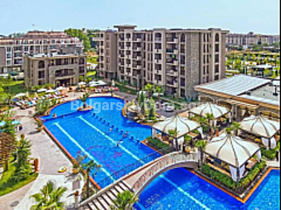 Cascadas to coś więcej niż tylko kompleks mieszkalny — to wzorcowe mini-miasto z najbardziej rozbudowaną infrastrukturą w całym kurorcie. Znajdziesz tu wszystko, o czym można marzyć: kilka tematycznych basenów, restauracje, kawiarnie, sklepy, a także pełne strefy sportu i relaksu — fitness, spa i liczne place zabaw. Teren jest zamknięty i strzeżony, a lokalizacja niezwykle wygodna: do morza zaledwie 800 metrów i bardzo blisko centrum kurortu. Roczna opłata eksploatacyjna wynosi 16 euro za metr kwadratowy, co jest w pełni uzasadnione poziomem usług i bogactwem udogodnień.