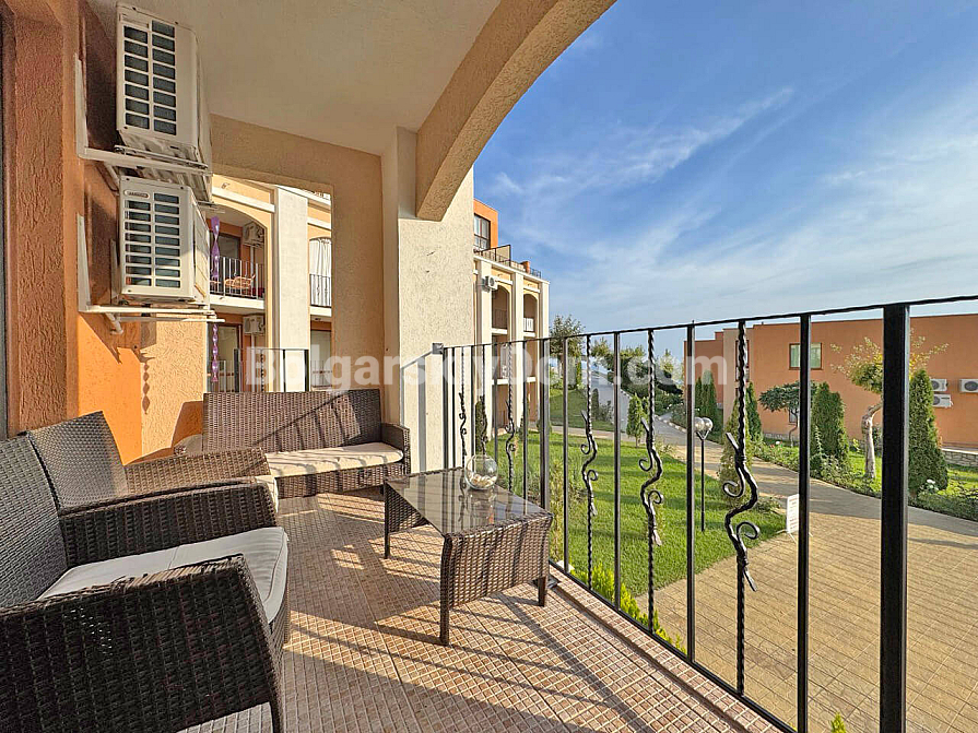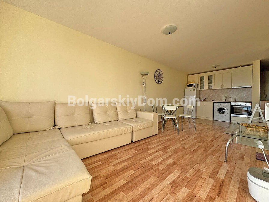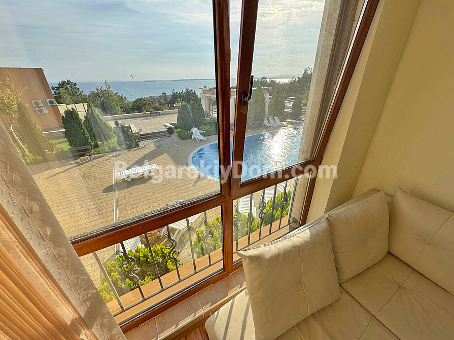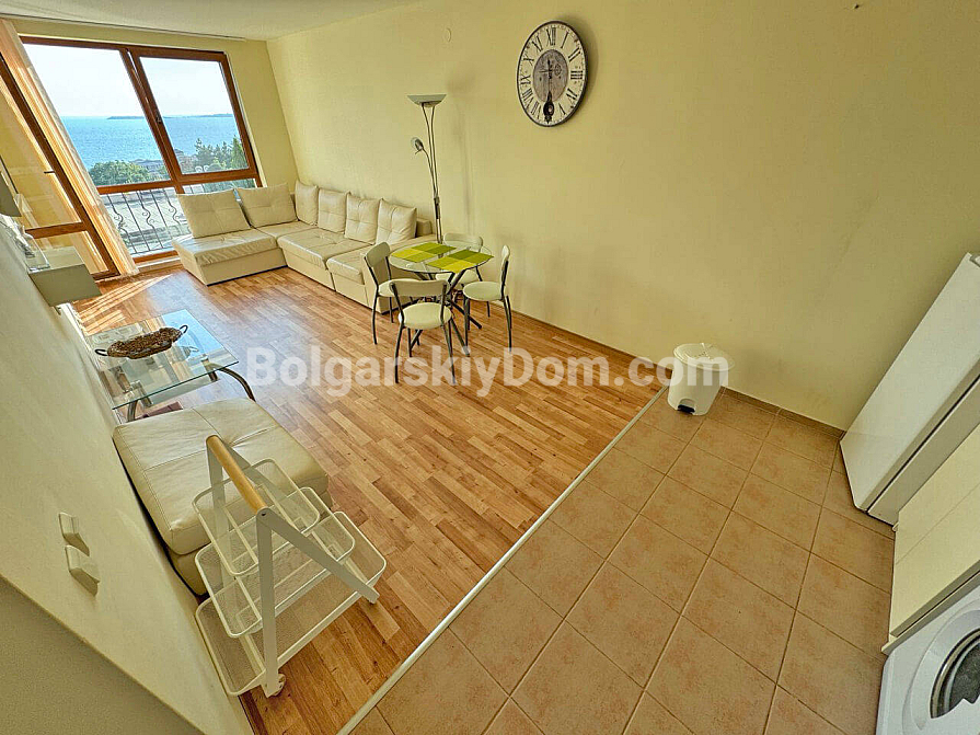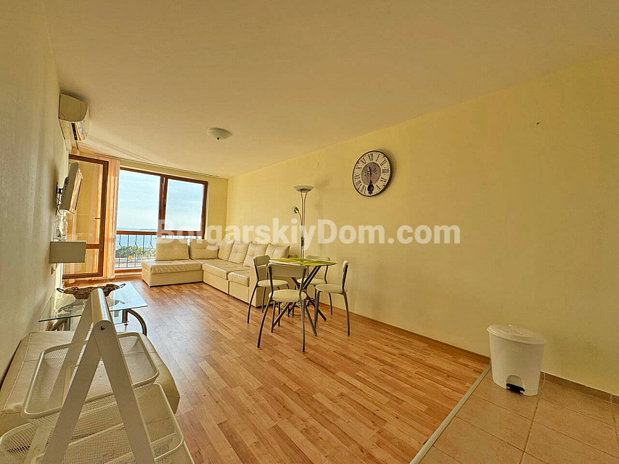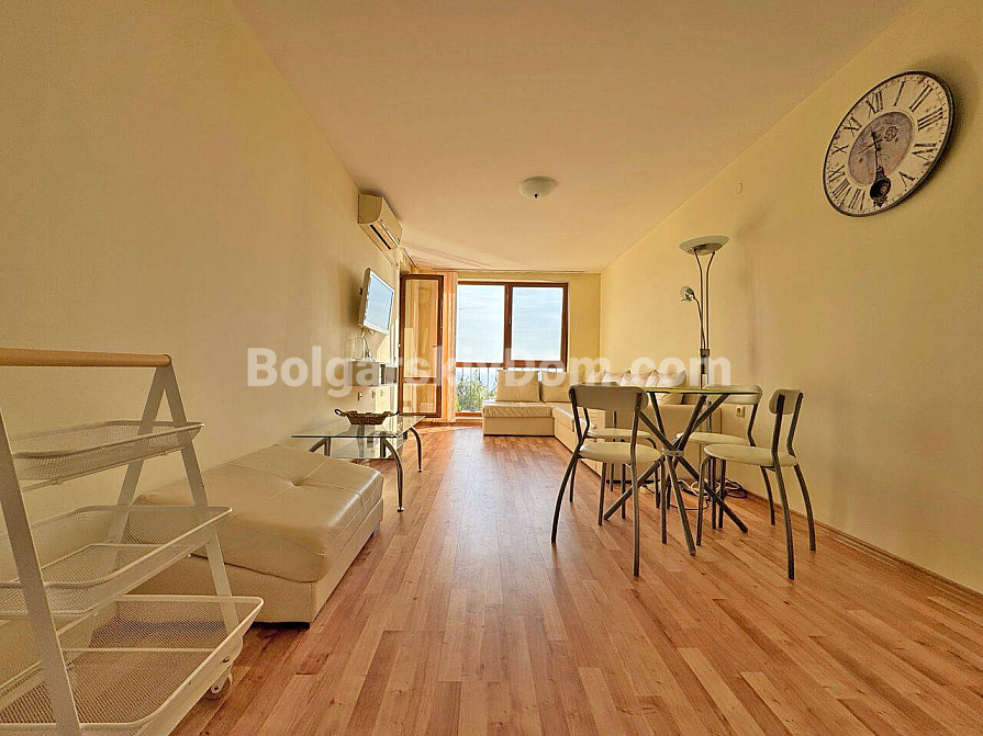 Prawdziwy górsko-morski kurort w jednym! Firma Bolgarskiy Dom oferuje na sprzedaż ekskluzywny apartament z dwiema sypialniami w kompleksie Sea Fort Club. Mieszkanie o powierzchni 77 m² znajduje się na drugim piętrze i posiada wyjątkowy atut – przestronny taras z zapierającym dech w piersiach widokiem na morze. Układ jest bardzo funkcjonalny: przestronny salon z aneksem kuchennym oraz przytulna sypialnia, z obu pomieszczeń prowadzi wyjście na balkon. Apartament sprzedawany jest w pełni umeblowany i wyposażony w sprzęt AGD, gotowy do zamieszkania od razu.