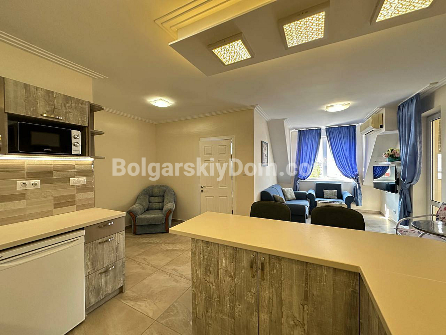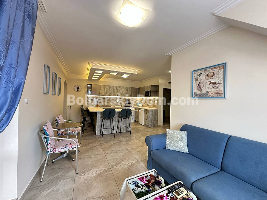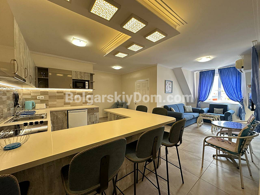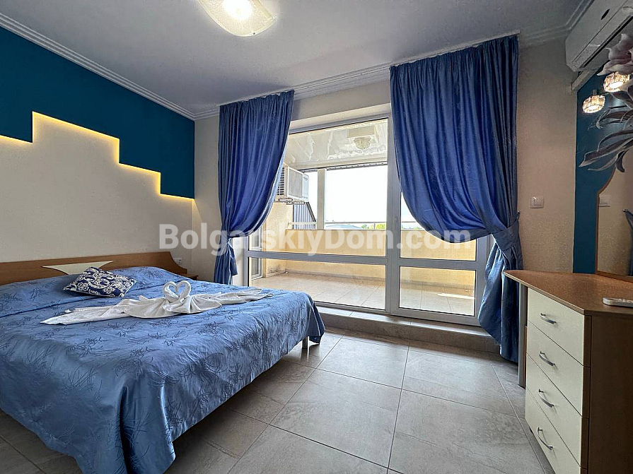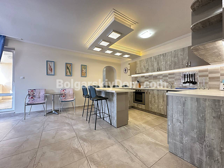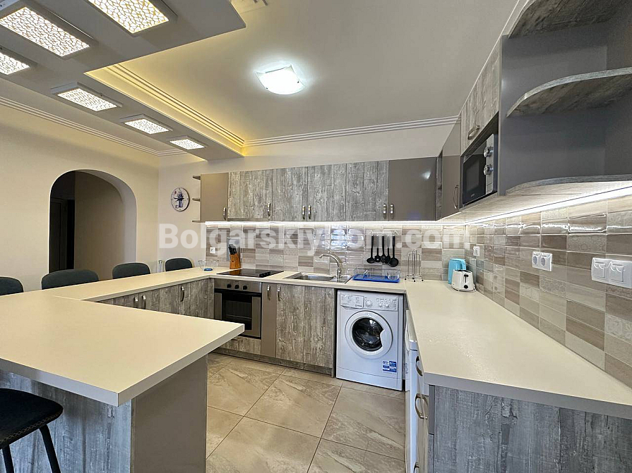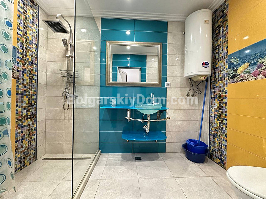 Zapomnij o nudnych wnętrzach — dziś agencja Bolgarskiy Dom prezentuje naprawdę jasne i przestronne mieszkanie z designerskimi akcentami! Na szóstym, ostatnim piętrze kompleksu Sea Dreams na sprzedaż jest trzypokojowy apartament o powierzchni 85 m², w pełni gotowy do zamieszkania. Czeka tu na Ciebie stylowa narożna kuchnia z kompletnym zestawem zabudowanych urządzeń — od piekarnika i płyty grzewczej po kuchenkę mikrofalową i pralkę. Salon jest pełen światła dzięki dużym oknom i urządzony w przytulnych, niebieskich tonach, a w sypialniach znajduje się wszystko, co potrzebne do komfortu, w tym panoramiczne okno z wyjściem na balkon w głównym pokoju. Nawet łazienka wyróżnia się nowoczesnym, kolorowym stylem i szklaną umywalką. Świetna cena i idealny stan techniczny mieszkania.