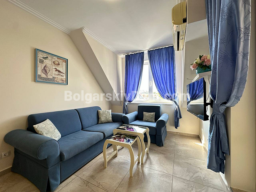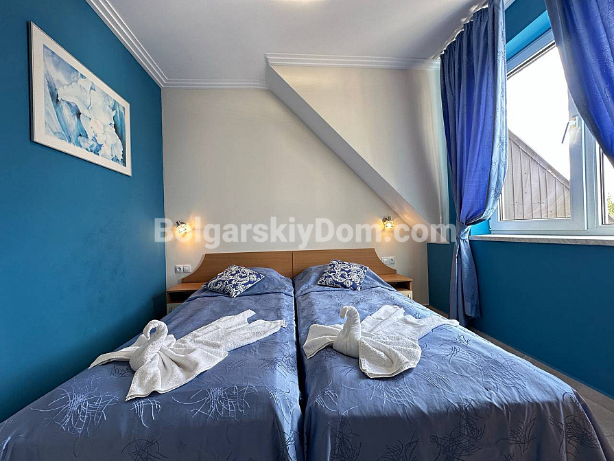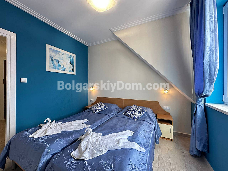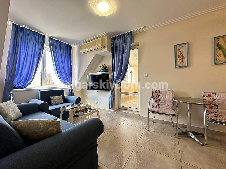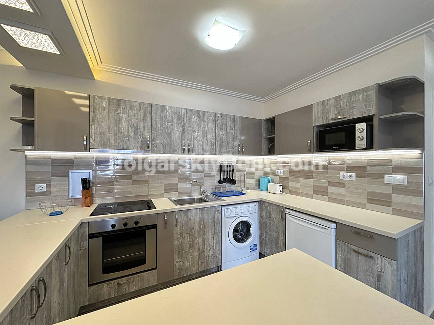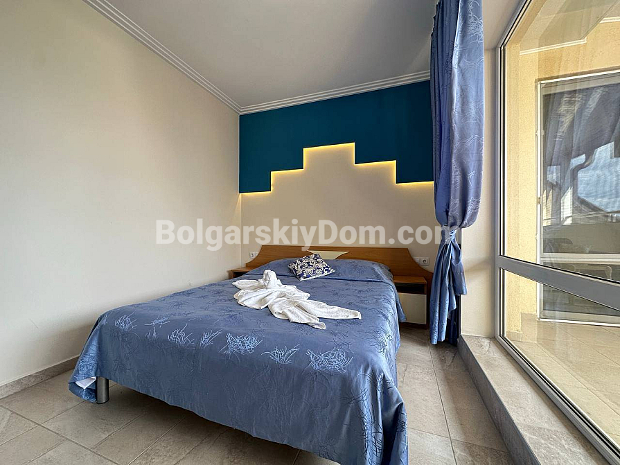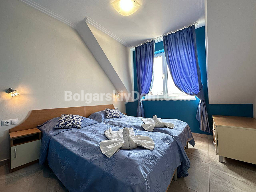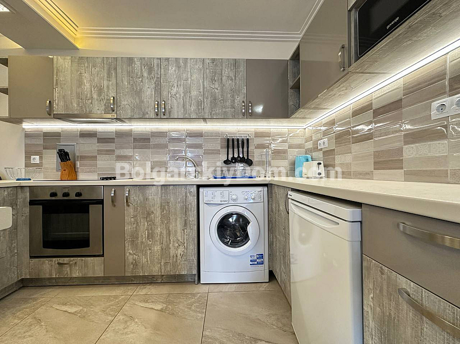 Zapomnij o nudnych wnętrzach — dziś agencja Bolgarskiy Dom prezentuje naprawdę jasne i przestronne mieszkanie z designerskimi akcentami! Na szóstym, ostatnim piętrze kompleksu Sea Dreams na sprzedaż jest trzypokojowy apartament o powierzchni 85 m², w pełni gotowy do zamieszkania. Czeka tu na Ciebie stylowa narożna kuchnia z kompletnym zestawem zabudowanych urządzeń — od piekarnika i płyty grzewczej po kuchenkę mikrofalową i pralkę. Salon jest pełen światła dzięki dużym oknom i urządzony w przytulnych, niebieskich tonach, a w sypialniach znajduje się wszystko, co potrzebne do komfortu, w tym panoramiczne okno z wyjściem na balkon w głównym pokoju. Nawet łazienka wyróżnia się nowoczesnym, kolorowym stylem i szklaną umywalką. Świetna cena i idealny stan techniczny mieszkania.