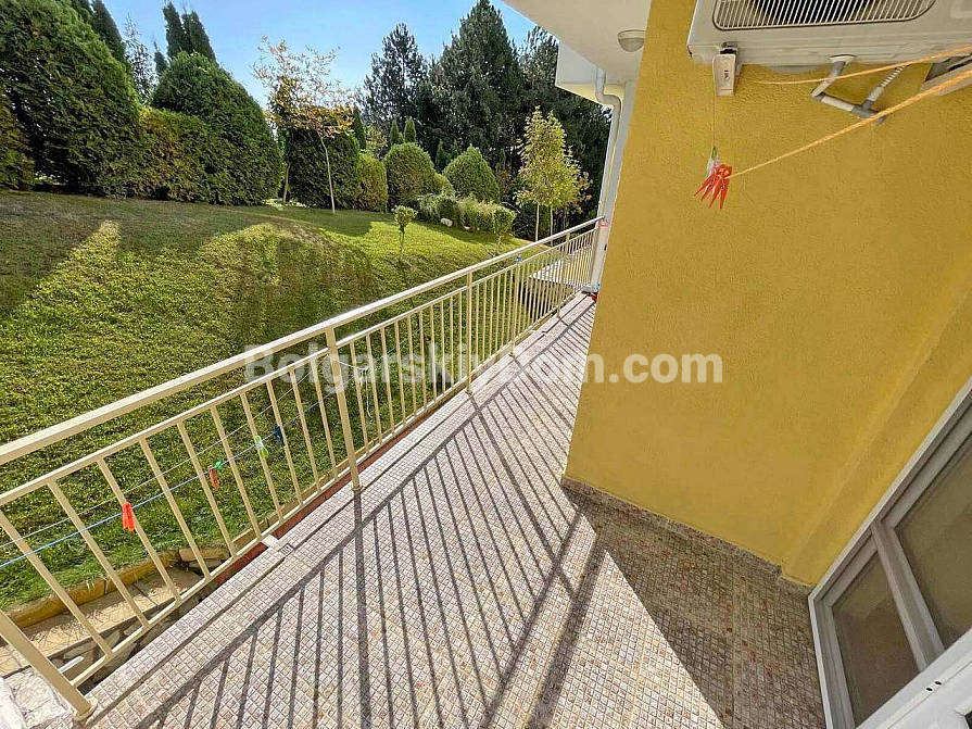 Marzysz o kolorowej, wakacyjnej atmosferze bez zbędnego zgiełku? Firma Bolgarskiy Dom oferuje przestronne, dwupokojowe mieszkanie w zacisznej, ale luksusowej lokalizacji – kompleksie Crown Fort Club w Sveti Vlas. Mieszkanie o powierzchni 68 m² znajduje się na pierwszym piętrze i posiada przytulny, otwarty taras z widokiem na zielony trawnik. Układ jest klasyczny i funkcjonalny: przedpokój, przestronny salon połączony z kuchnią, osobna sypialnia, łazienka i taras. Mieszkanie sprzedawane jest z meblami i sprzętem AGD oraz podłączone do standardowych taryf domowych, co czyni je idealnym do całorocznego zamieszkania lub stabilnego wynajmu.