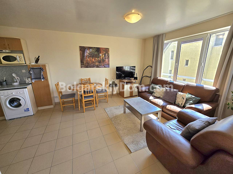 Oferujemy na sprzedaż doskonałe dwupokojowe mieszkanie w nowoczesnym kompleksie mieszkaniowym Si Dreams, położonym w jednej z najbardziej poszukiwanych dzielnic kurortu Słoneczny Brzeg. Powierzchnia - 65 m², czwarte (przedostatnie) piętro. Jasny salon z oddzielną strefą kuchenną w niszy i jadalnią, oddzielna sypialnia z dwoma dużymi oknami, łazienka z kabiną prysznicową i przytulny taras z częścią wypoczynkową - idealne miejsce na poranną kawę lub wieczór z kieliszkiem wina. Mieszkanie sprzedawane jest wraz z meblami i sprzętem AGD — można się wprowadzić i zamieszkać od razu! Stan doskonały, winda działa, istnieje oddzielna partia na energię elektryczną.