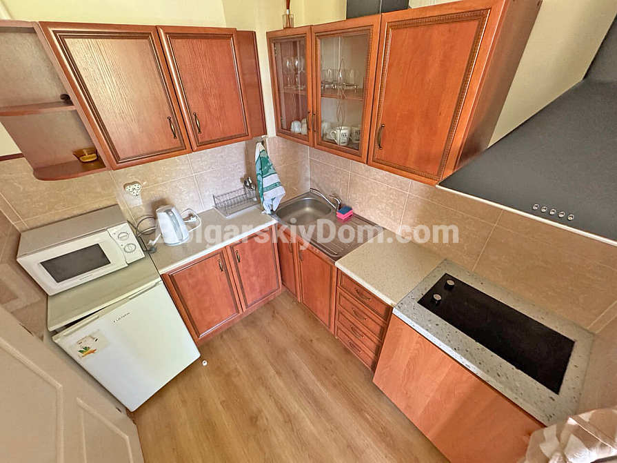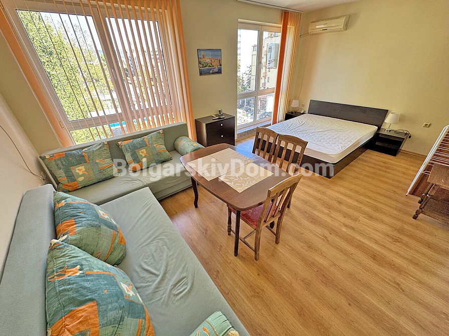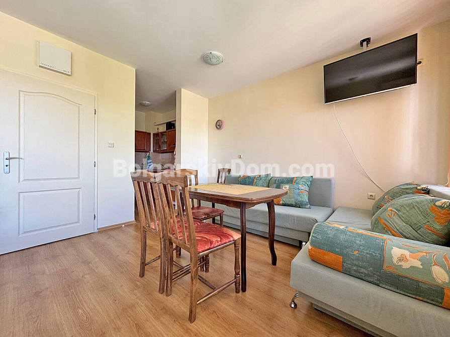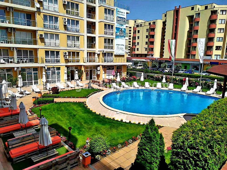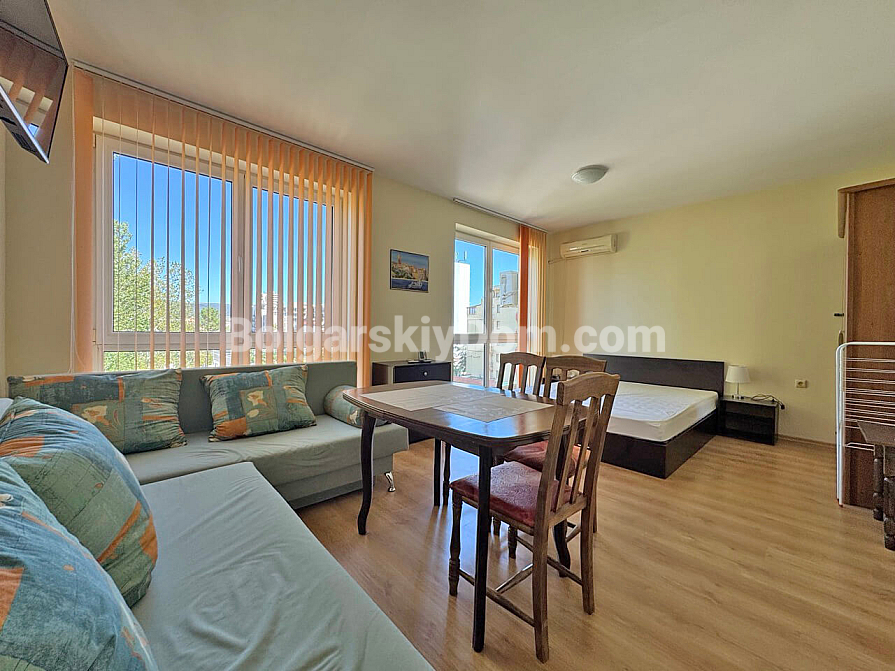Jeśli dla Ciebie najważniejsza jest lokalizacja, lokalizacja i jeszcze raz lokalizacja — znaleźliśmy idealną, kompaktową opcję w samym sercu kurortu. Firma Bolgarskiy Dom rozpoczyna sprzedaż przytulnego studia o powierzchni 50 m² w kompleksie Flores Park. Apartament znajduje się na czwartym piętrze budynku z windą i mimo braku balkonu jest w pełni umeblowany oraz wyposażony w sprzęt AGD. To gotowe rozwiązanie dla osób, które szukają mieszkania pod wynajem lub na krótki, ale intensywny wypoczynek, bez konieczności inwestowania w wyposażenie.