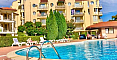 Arcadia to niewielki, ale bardzo przytulny i zadbany kompleks mieszkalny położony w najbardziej prestiżowej, południowej części Słonecznego Brzegu. Do słynnej plaży Cocoa Beach i czystego morza jest zaledwie 300 metrów! Na terenie kompleksu stworzono wszystkie warunki do beztroskiego wypoczynku: duży odkryty basen z częścią dla dzieci, strefy do opalania, plac zabaw oraz, co szczególnie ważne, strzeżony parking dla właścicieli. Dodatkowym atutem jest rzeka przepływająca w pobliżu, tworząca idealne miejsce do spacerów i relaksu. Kompleks posiada kontrolowany dostęp i doskonały zarząd. Roczna opłata eksploatacyjna wynosi 14 euro za metr kwadratowy.