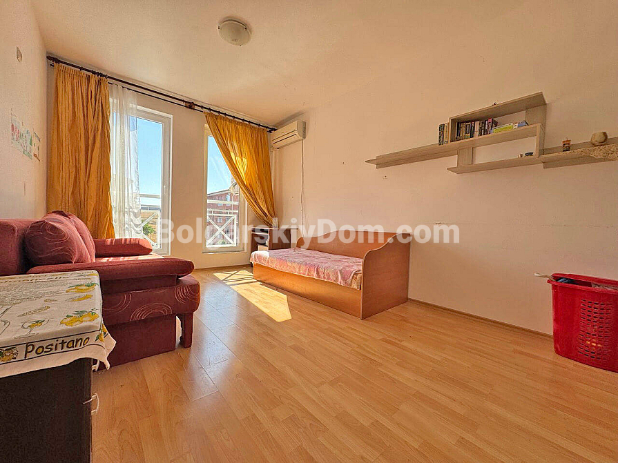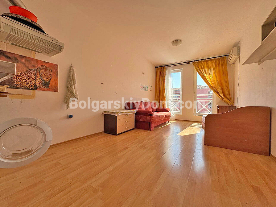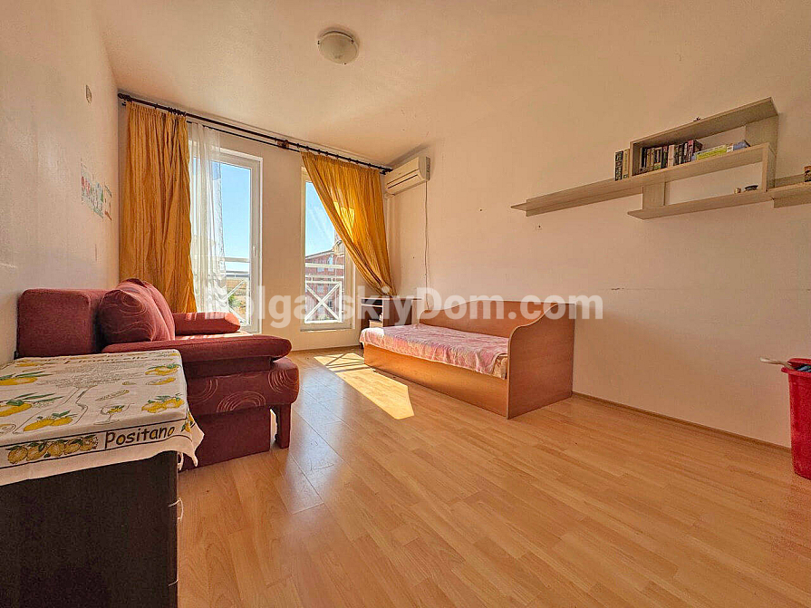 Nowość w katalogu nieruchomości budżetowych! Jeśli szukasz najtańszego sposobu wejścia na bułgarski rynek nieruchomości — oto on. Firma Bolgarskiy Dom prezentuje kawalerkę o powierzchni 34 m² w dużym kompleksie Sunny Day 6. Ten apartament to idealne, ekonomiczne rozwiązanie, położone na czwartym piętrze. Układ obejmuje jasny pokój z aneksem kuchennym, łazienkę i balkon. Mieszkanie jest umeblowane i nie wymaga dodatkowych nakładów, a cena wynosi mniej niż 1000 euro za metr kwadratowy.