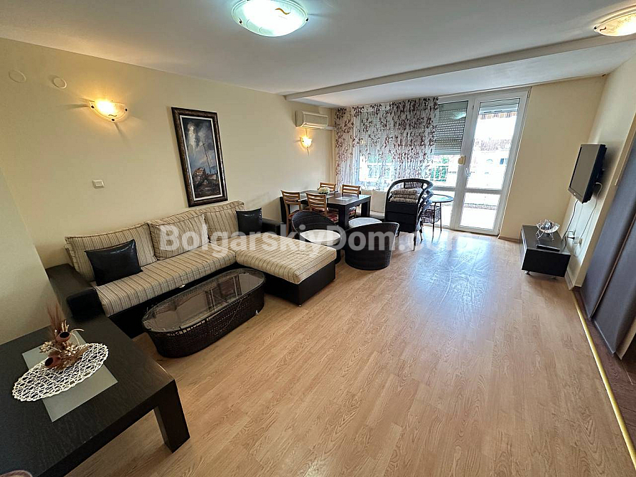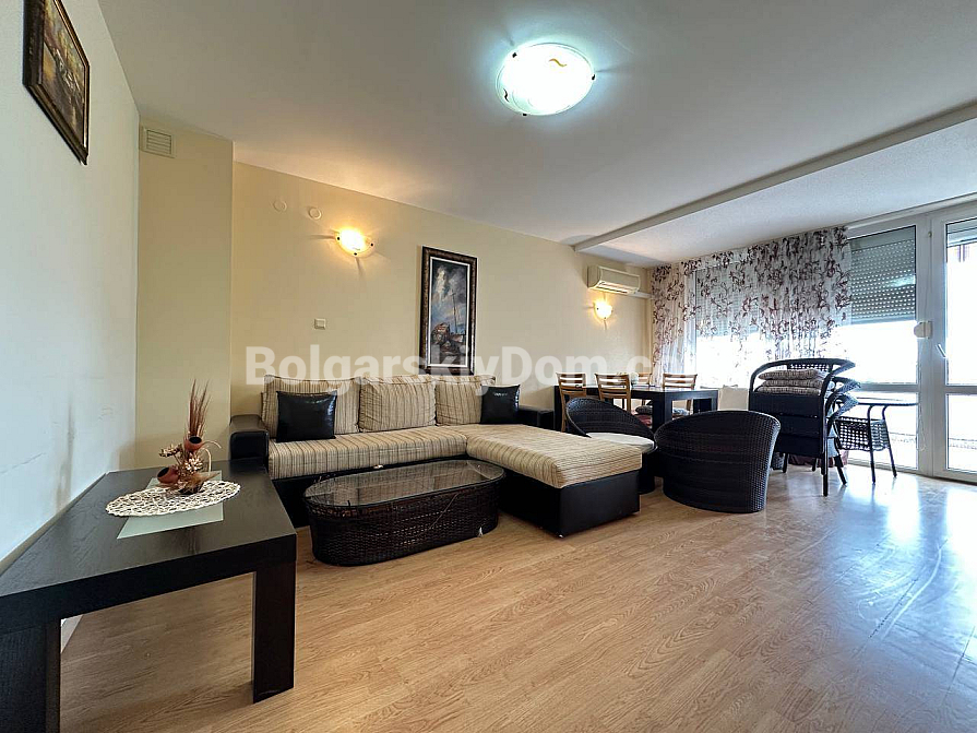 Po co wybierać między ceną a komfortem, skoro można mieć jedno i drugie? Agencja nieruchomości Bolgarskiy Dom prezentuje wyjątkowo komfortowe trzypokojowe mieszkanie o powierzchni 115 m² w kompleksie Sunny Fort. Apartament znajduje się na czwartym piętrze i ma idealny, funkcjonalny układ: przestronny salon z wygodną narożną sofą i strefą relaksu oraz dwie jasne, oddzielne sypialnie. Kuchnia jest w pełni wyposażona w nowoczesny sprzęt AGD. Główną zaletą dla rodzin jest obecność dwóch pełnowymiarowych łazienek, co znacznie zwiększa komfort codziennego życia. Mieszkanie jest całkowicie umeblowane i gotowe do zamieszkania.