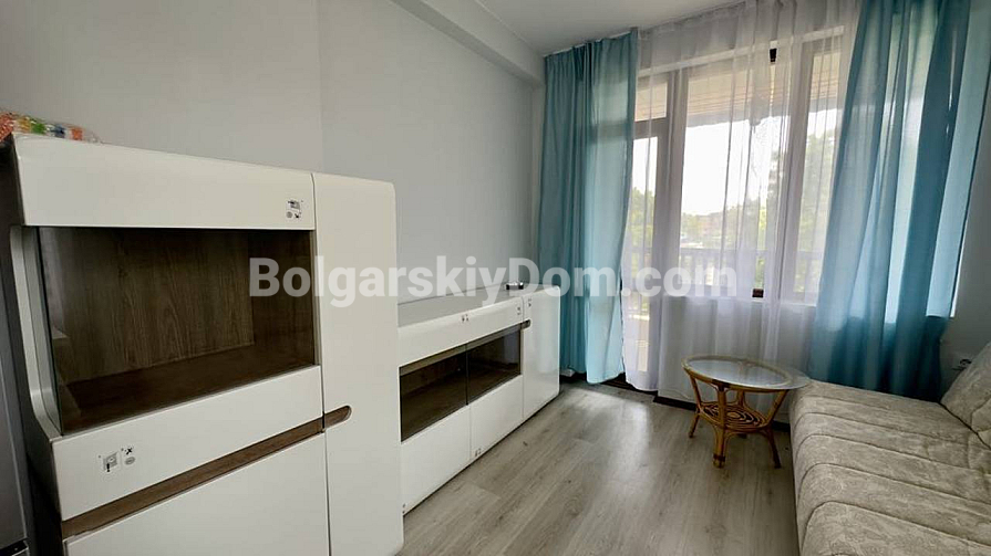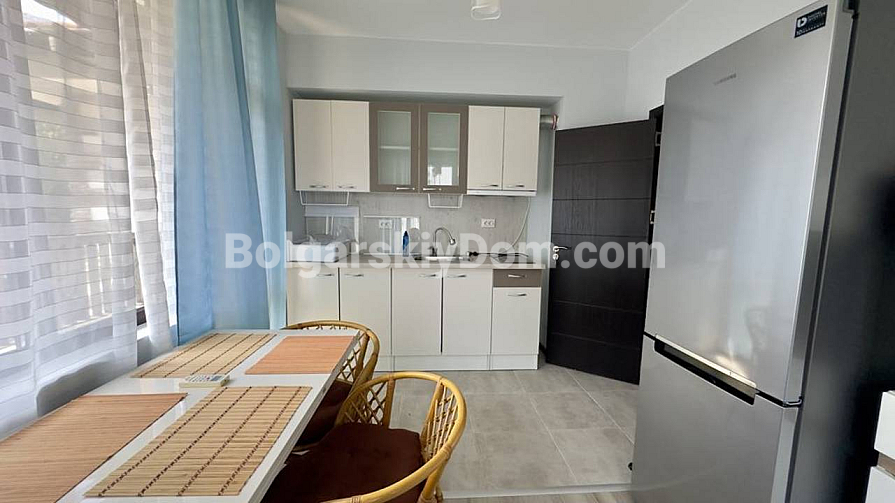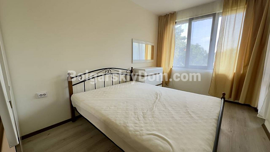 Wyobraź sobie dom jako oazę spokoju, otoczoną zielonym dębowym lasem, gdzie powietrze jest czyste i świeże. Agencja nieruchomości Bolgarskiy Dom oferuje do obejrzenia i zakupu dwupokojowe mieszkanie o powierzchni 67,82 m² w kompleksie Green Paradise IV. Mieszkanie znajduje się na czwartym piętrze i ma wyjątkową południowo-wschodnią ekspozycję z dużymi oknami — dzięki temu jest tu jasno, a zimą cieplej. Układ obejmuje przestronny salon, sypialnię z osobną garderobą oraz wyjściem na jeden z dwóch dużych tarasów. Nieruchomość jest sprzedawana w pełni umeblowana, wraz z lodówką i pralką.