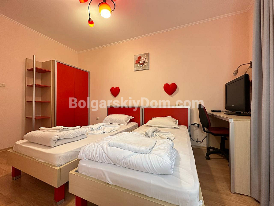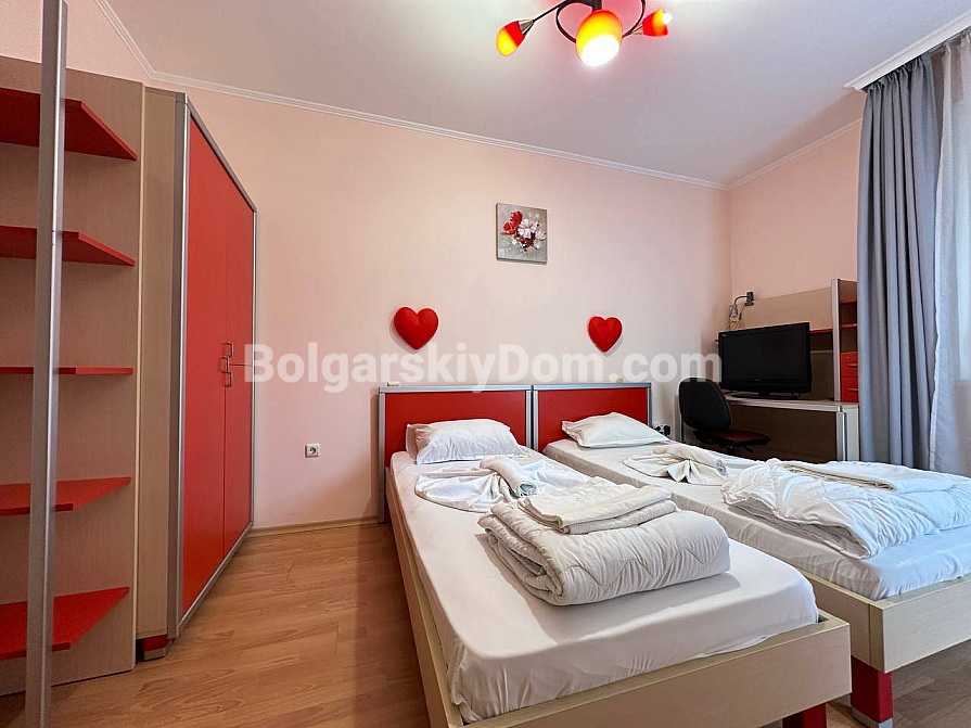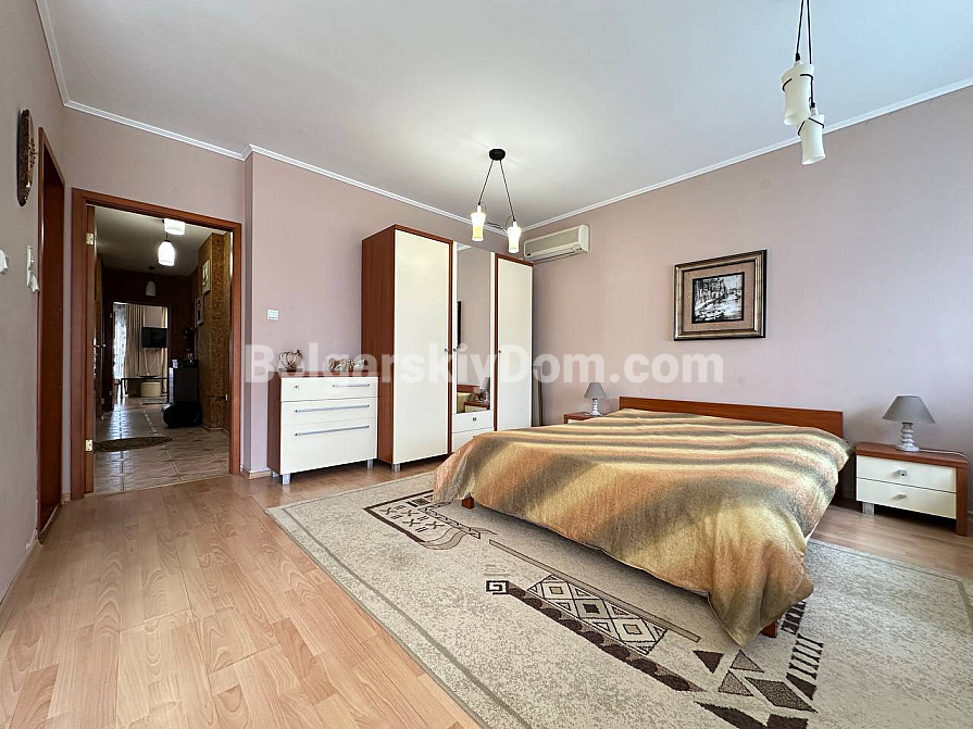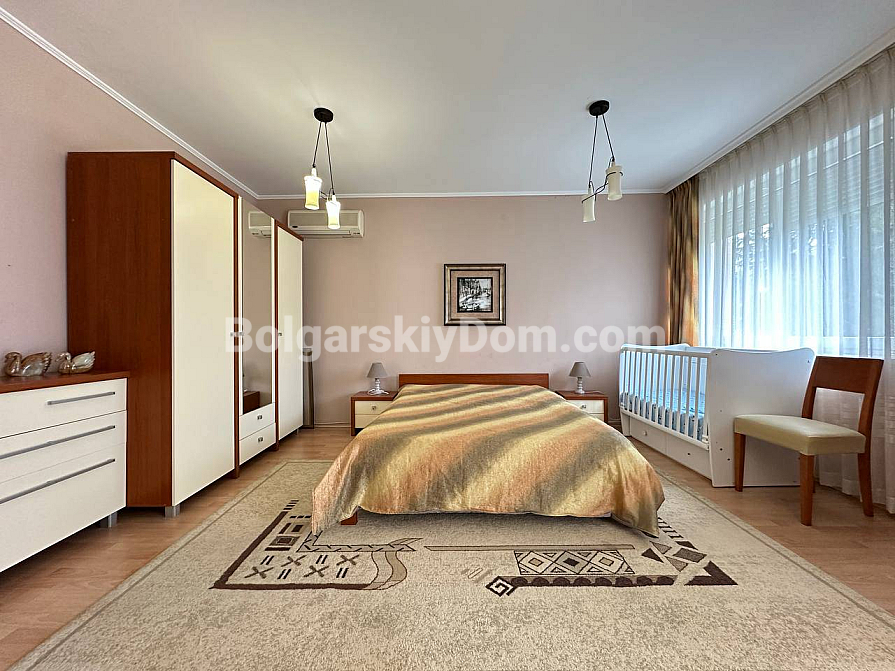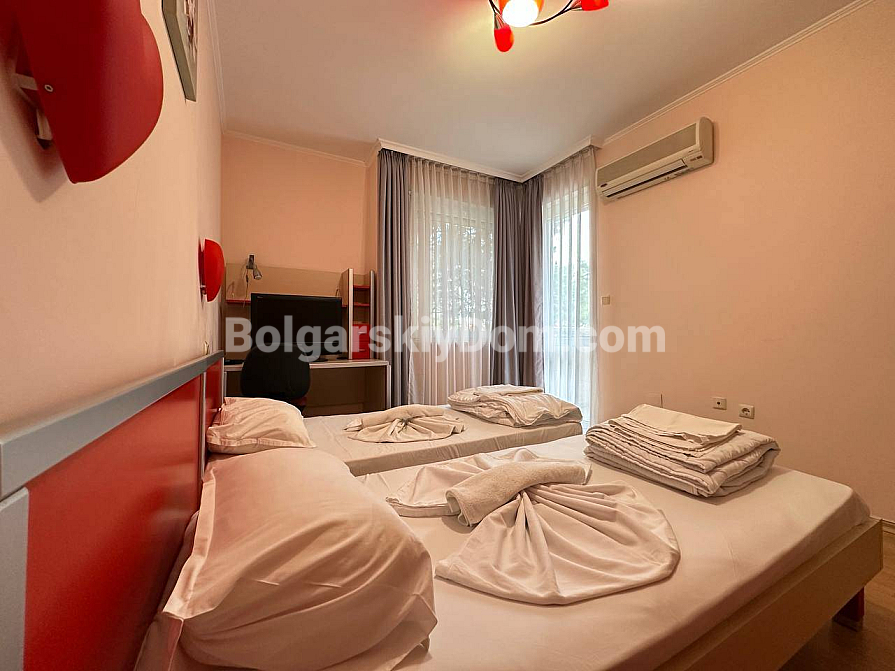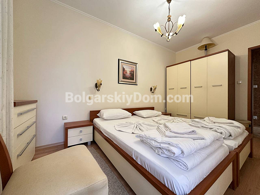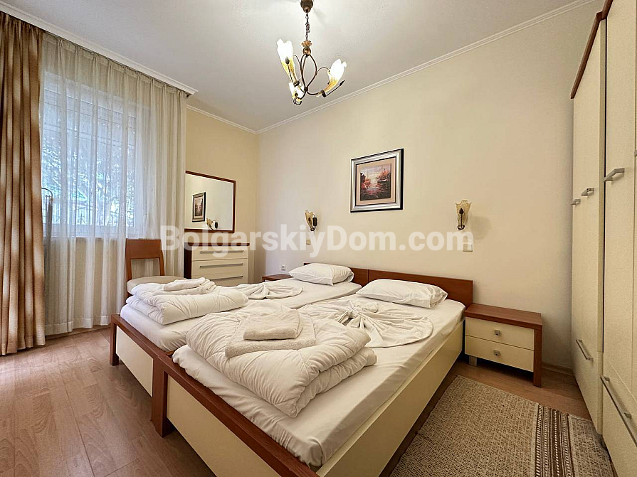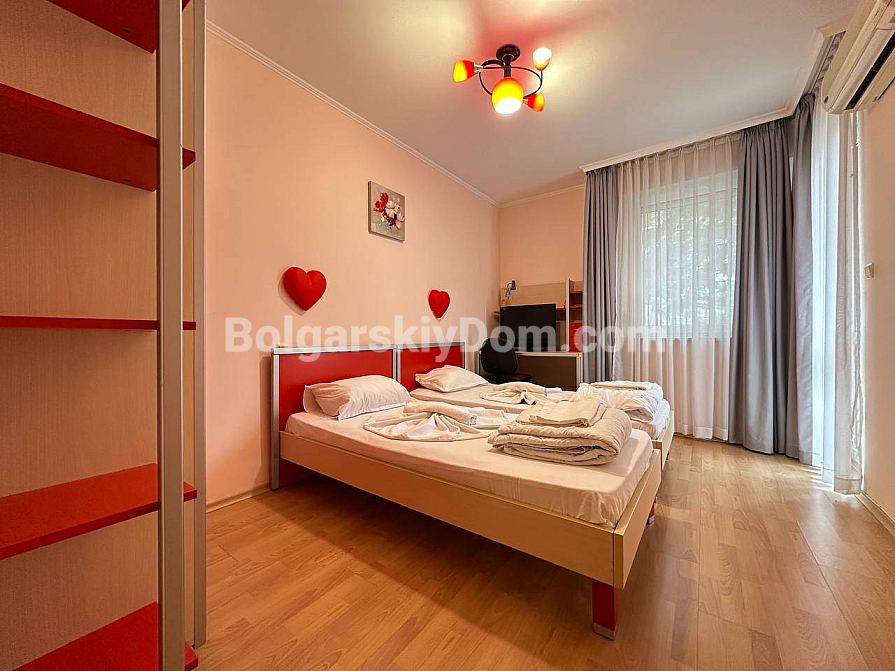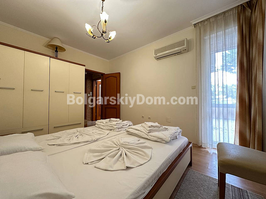 Nowość: nieruchomość wypoczynkowa w unikalnym formacie wyłącznie w Bolgarskiy Dom! Przestrzeń stworzona specjalnie dla dużej rodziny lub wynajmu o wysokiej stopie zwrotu. Nasza firma prezentuje wyjątkową ofertę w samym centrum kurortu – ogromne mieszkanie o powierzchni 150 m² w kompleksie Sunny Fort. Ta nieruchomość w praktyce łączy dwie dwupokojowe kawalerki, co daje niesamowitą przewagę: trzy oddzielne sypialnie, dwie łazienki, duży przedpokój i trzy tarasy! Najbardziej ekskluzywną cechą tej oferty jest jej położenie na parterze z bezpośrednim wyjściem do basenu. Otrzymujesz wygodę domu poza miastem z serwisem kompleksu wypoczynkowego. Prawnie mieszkanie jest również wyjątkowe: zachowano dwa oddzielne akty notarialne oraz dwa oddzielne liczniki prądu i wody, co zapewnia niesamowitą elastyczność przy przyszłej odsprzedaży lub wynajmie części nieruchomości.