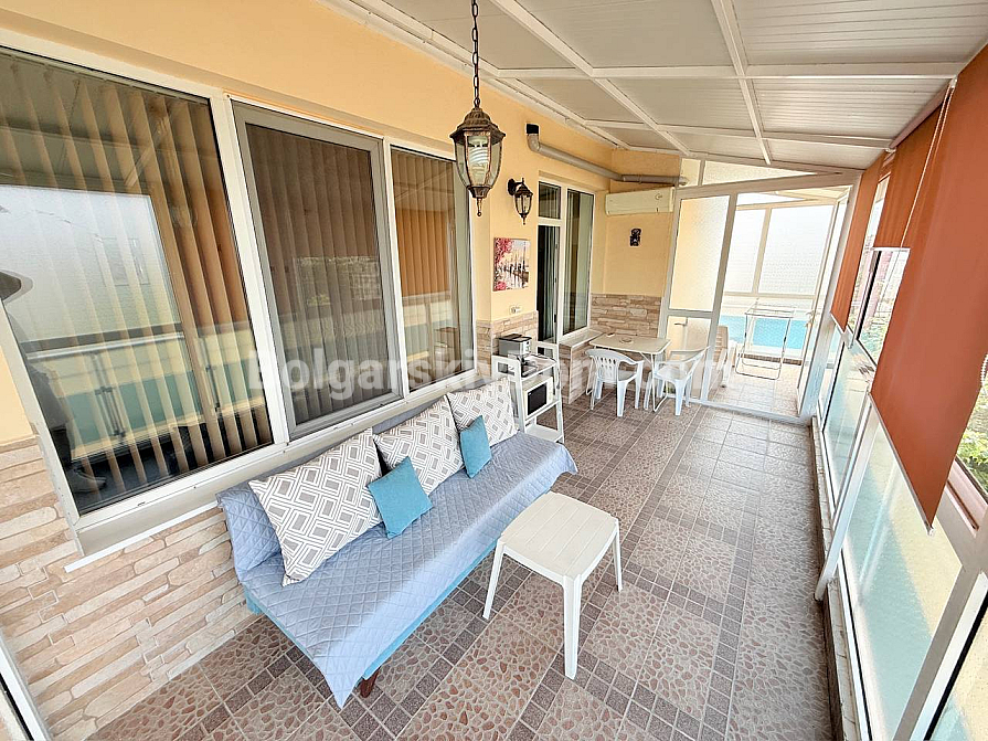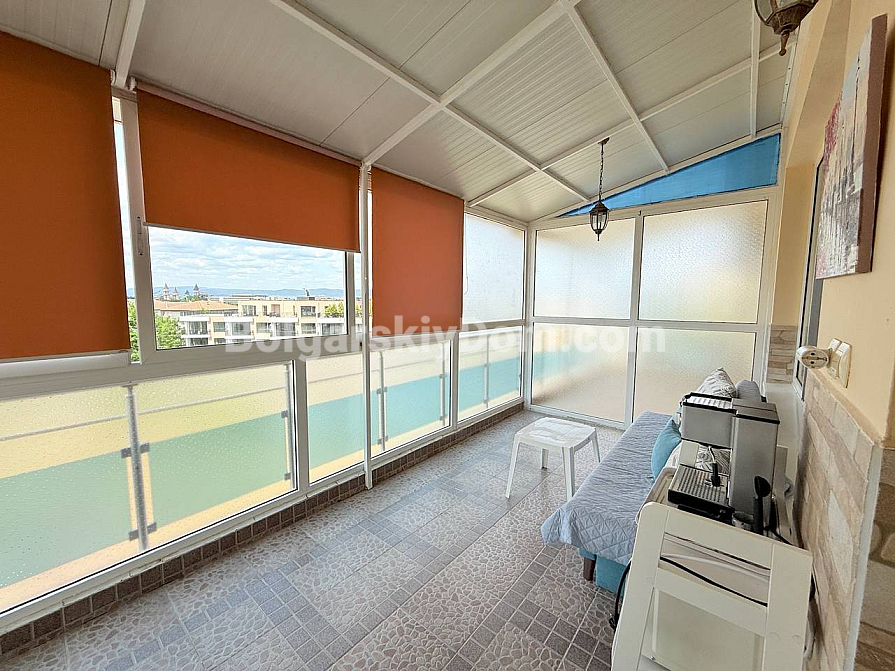 Zamień miejskie zgiełk na spokojny, ale luksusowy wypoczynek nad Morzem Czarnym! Stylowe, w pełni umeblowane studio o powierzchni 55 m² czeka na Ciebie w nowoczesnym kompleksie mieszkalnym Oasis w Ravdzie. Apartament znajduje się na 6. piętrze, ma dobrze przemyślany układ i wykorzystuje przestrzeń w najlepszy sposób. Wnętrze jest skromne, ale w pełni funkcjonalne. Duży balkon jest przeszklony, co czyni mieszkanie doskonałym wyborem do całorocznego zamieszkania.