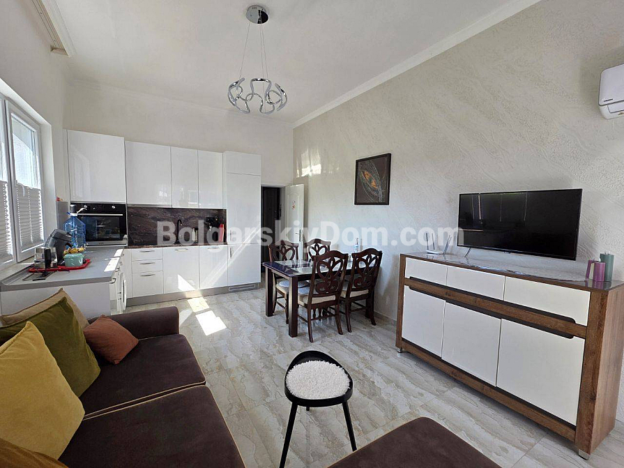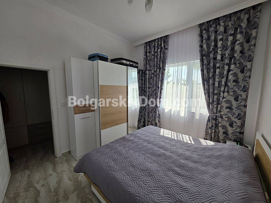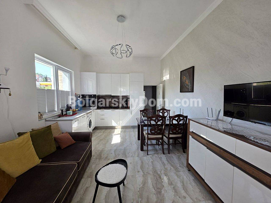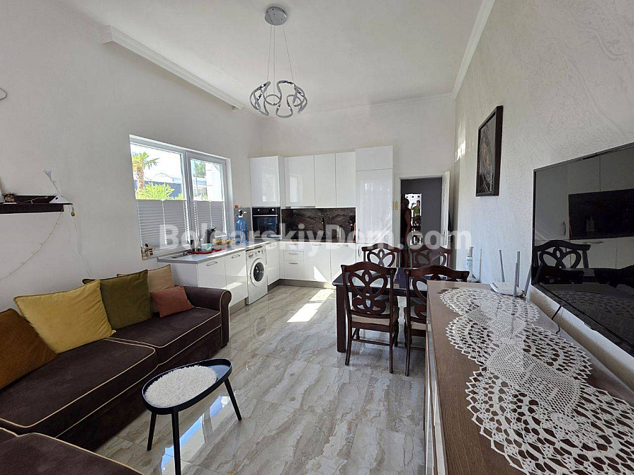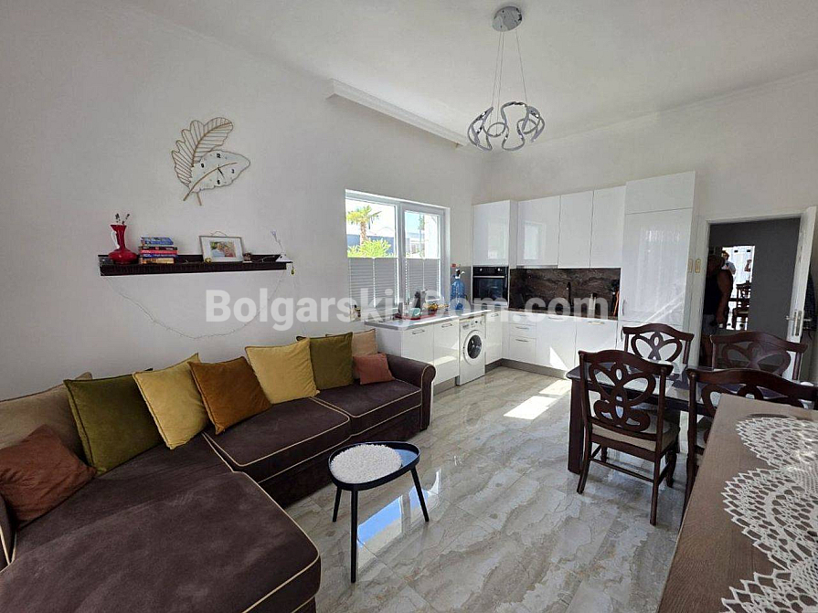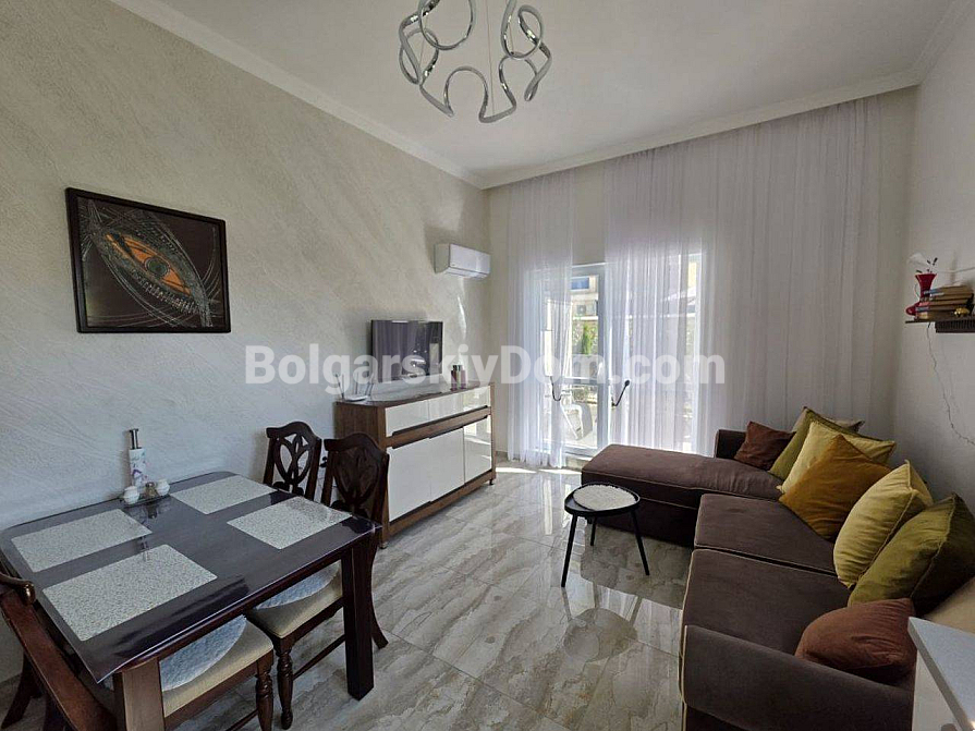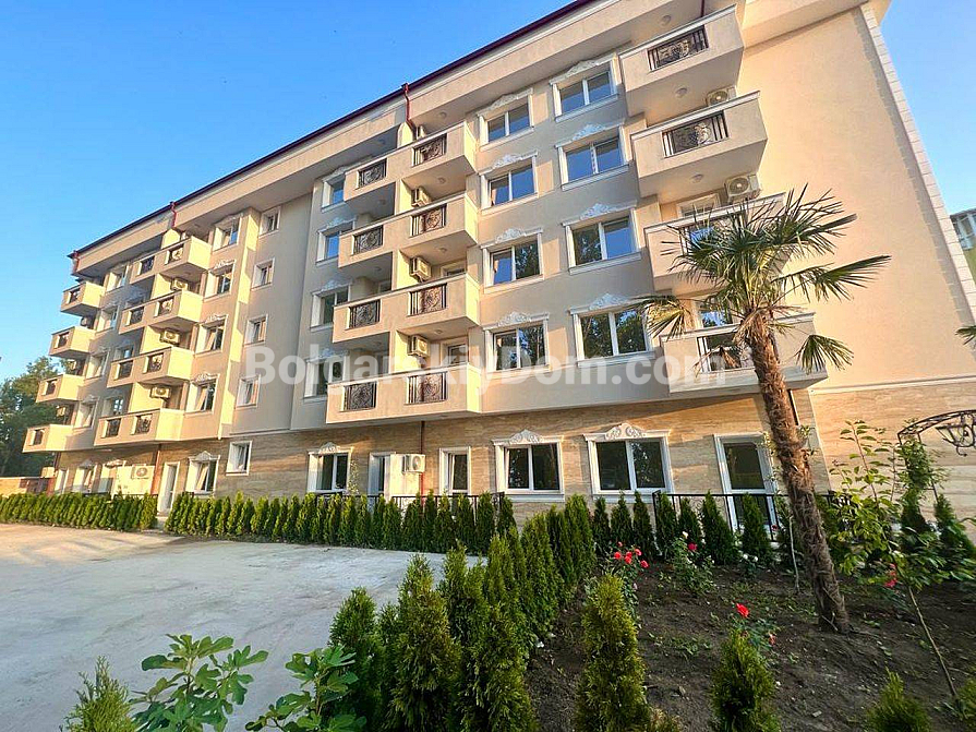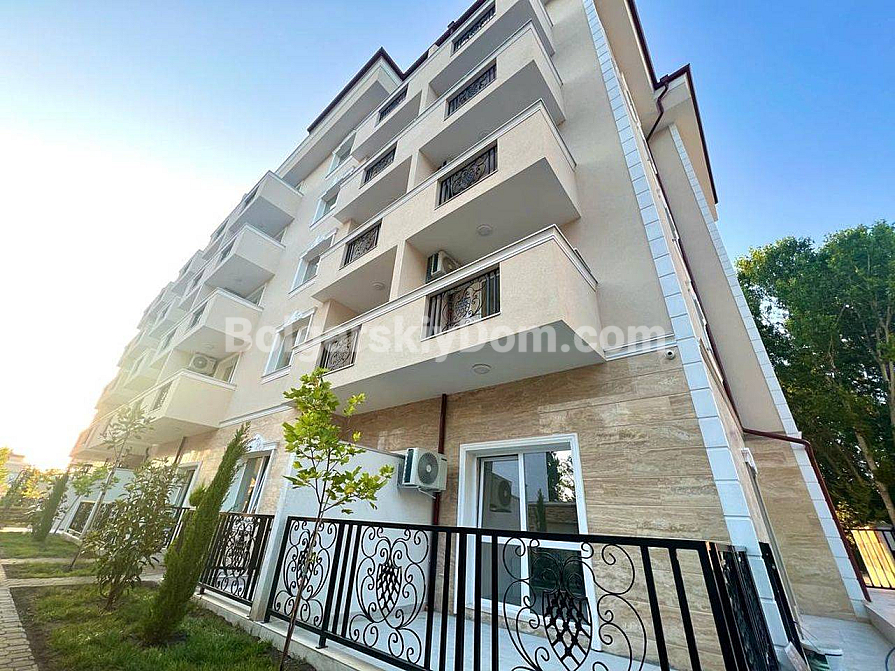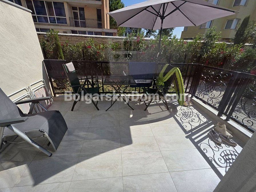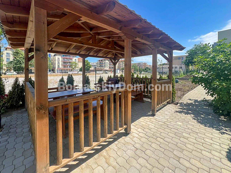 Twoje idealne dwupokojowe mieszkanie z wysokimi sufitami i bezpośrednim wyjściem na zieloną strefę czeka na Ciebie w samym sercu kurortu! Agencja Bolgarskiy Dom oferuje na sprzedaż apartament o powierzchni 67 m² w nowym kompleksie mieszkalnym Magnolia 6 w Słonecznym Brzegu. Apartament znajduje się na parterze, co daje przewagę dużego tarasu z miejscem do wypoczynku. Główna zaleta: wysokość sufitów wynosi 3,3 metra, co tworzy niezwykłe poczucie przestrzeni i światła. Mieszkanie ma doskonały układ — przedpokój, przestronny salon z aneksem kuchennym oraz osobną sypialnię. Jest w idealnym stanie, w pełni wyposażone w nowe, wysokiej jakości meble i sprzęt AGD.