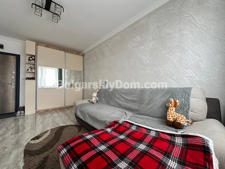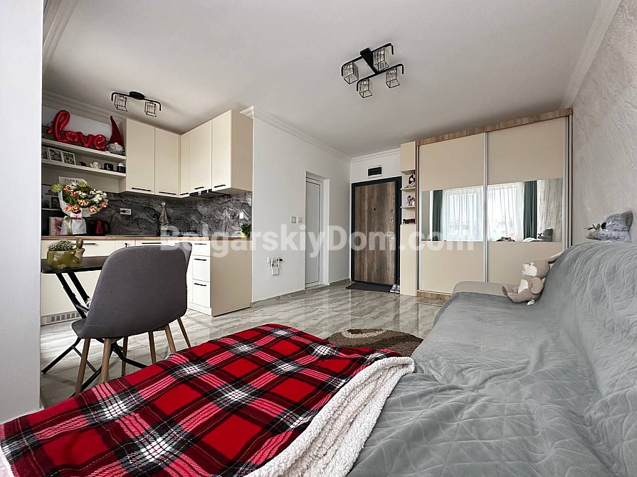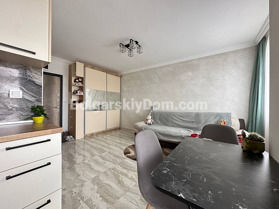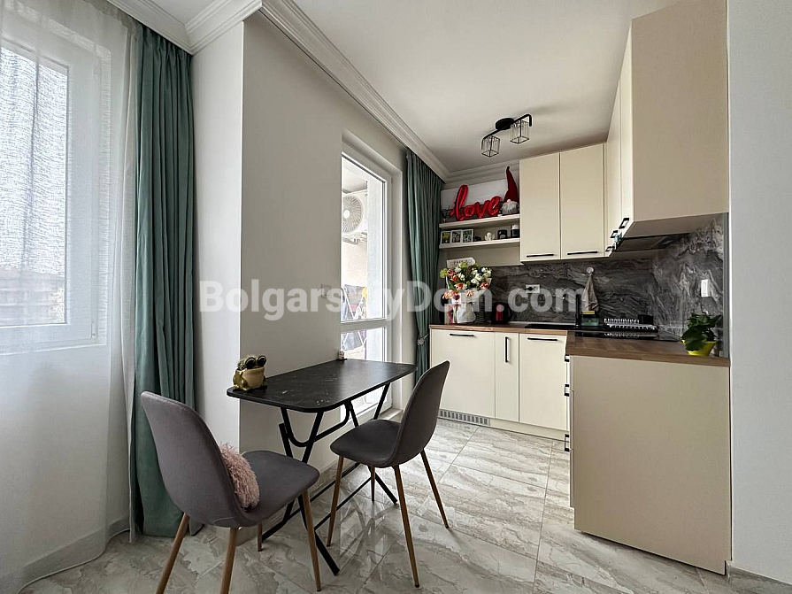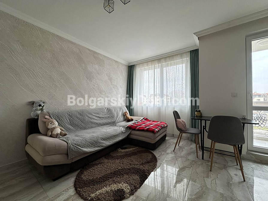 Marzysz o własnym zakątku nad morzem? To idealna propozycja do życia i wypoczynku! Na sprzedaż pojawiło się przytulne studio w jednym z nowych kompleksów w centralnej części Słonecznego Brzegu! Apartament o powierzchni 42 m² znajduje się na czwartym piętrze i jest w pełni gotowy do zamieszkania: jasny i przestronny układ, nowoczesne meble i sprzęt, a wnętrze zaprojektowane z dbałością o każdy detal. Kuchnia znajduje się w osobnej wnęce. Jest taras. Wystarczy wejść i zamieszkać!