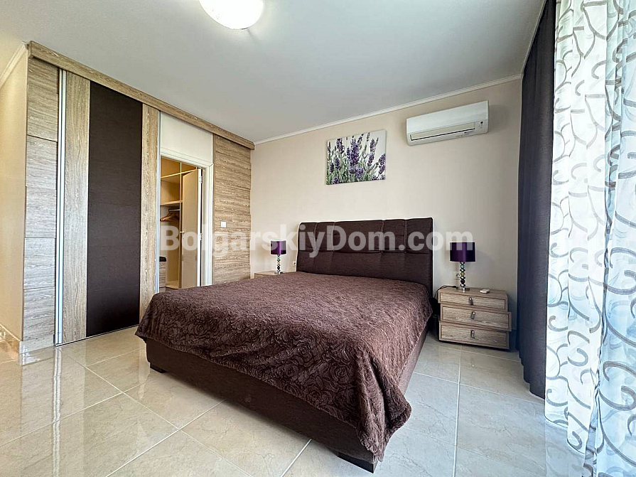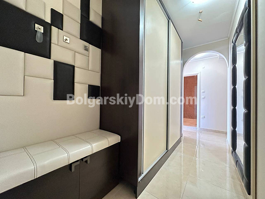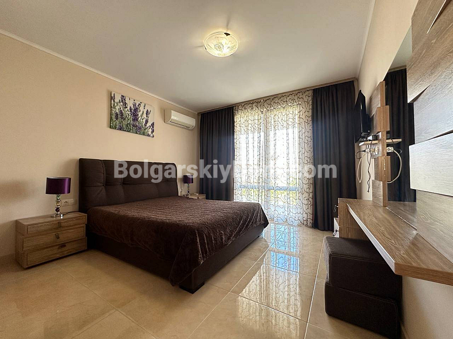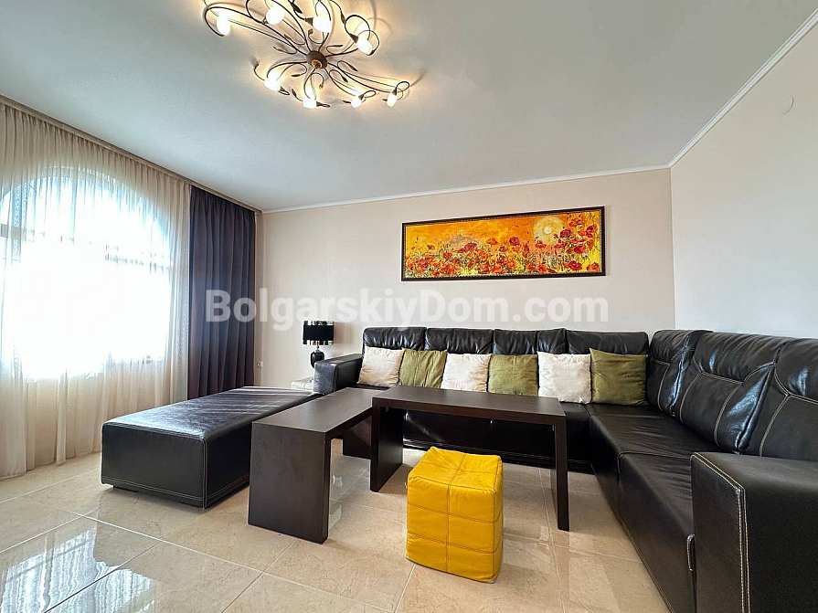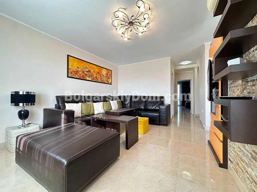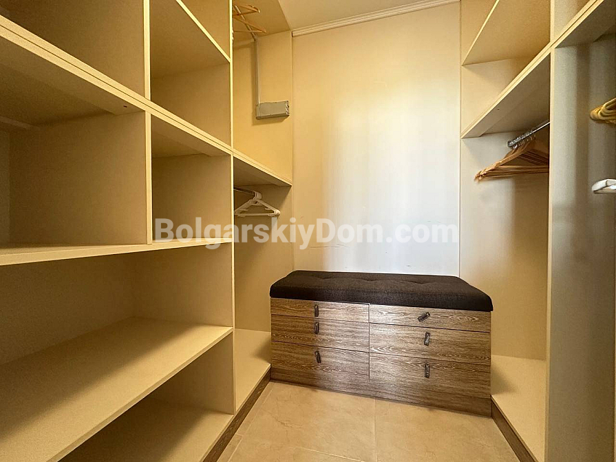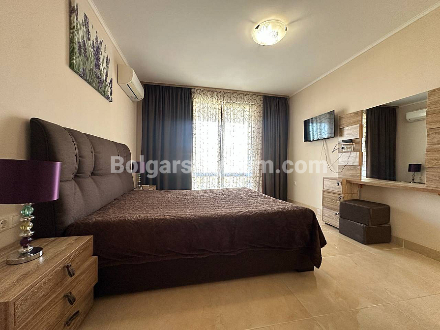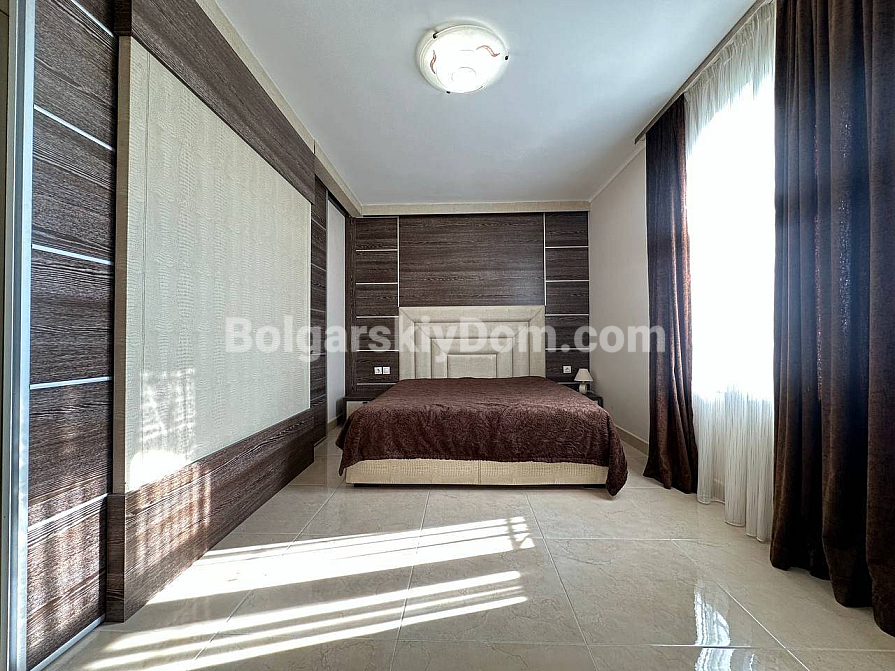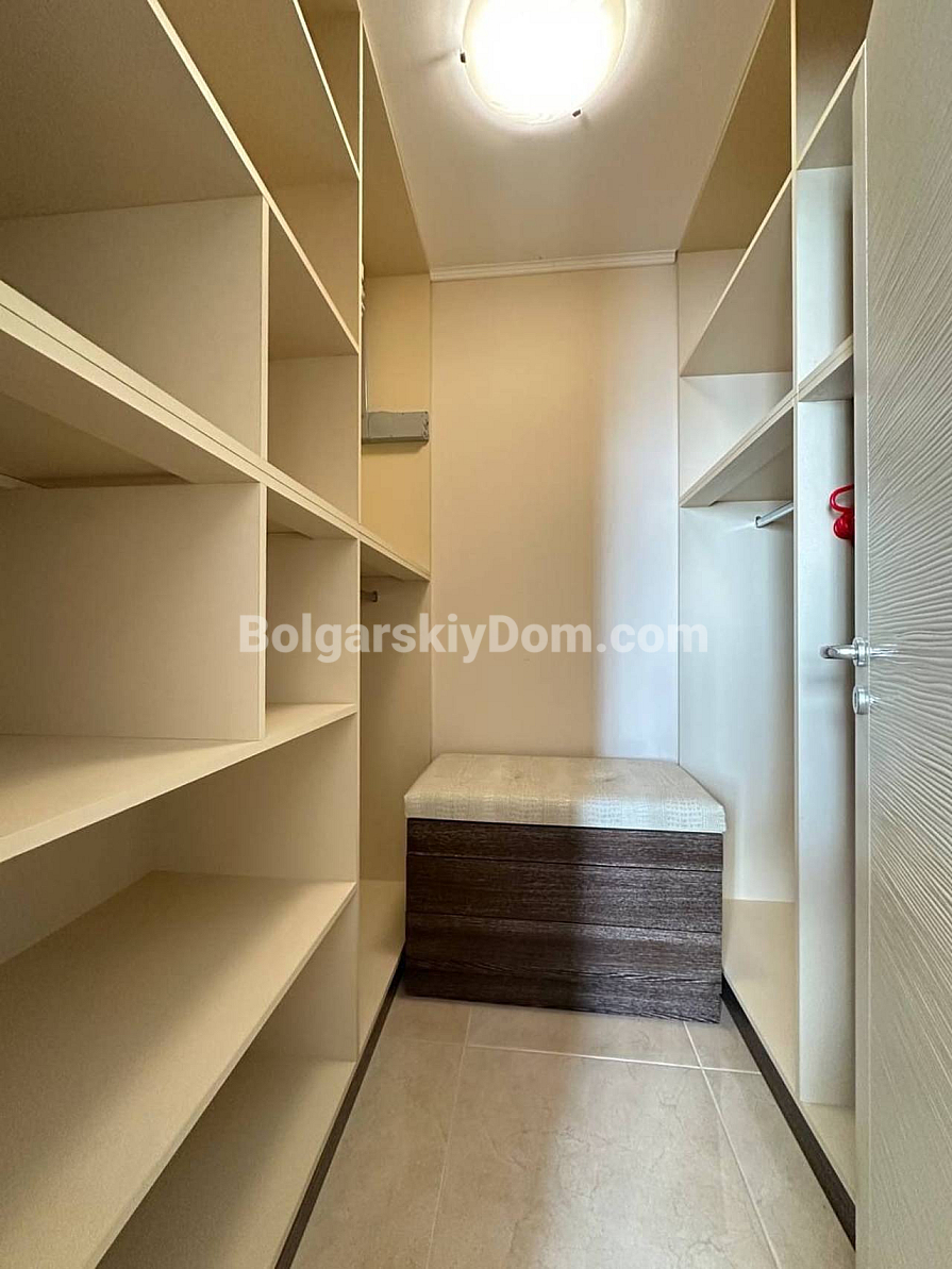 Styl, przestrzeń i atmosfera premium nad morzem – wszystko to harmonijnie łączy się w naszej nowej ofercie. Elegancki apartament z dwiema sypialniami znajduje się na piątym piętrze siedmiopiętrowego budynku w kompleksie Esteban w Nessebarze. 129 m² powierzchni, gdzie każdy detal został przemyślany dla Państwa komfortu i estetycznej przyjemności. Nowoczesny design tworzy poczucie lekkości i przestrzeni. Duży salon jest optycznie wydzielony od kuchni i części jadalnej, tworząc serce domu – miejsce, w którym przyjemnie spędza się wieczory z rodziną i przyjaciółmi. Dwie oddzielne sypialnie zapewniają maksymalną prywatność, każda z własną garderobą. Z salonu i sypialni prowadzą wyjścia na dwie przytulne tarasy. Apartament posiada dwie w pełni wyposażone łazienki z szklanymi kabinami prysznicowymi. Dzięki dwustronnemu układowi w mieszkaniu zawsze jest dużo naturalnego światła i świeżego morskiego powietrza.