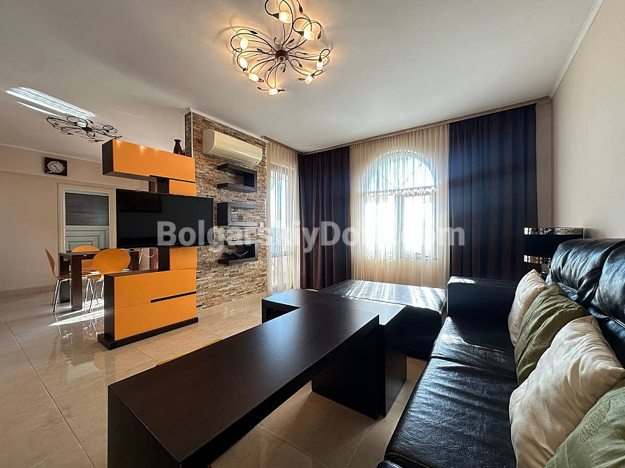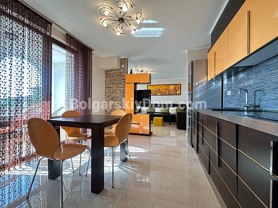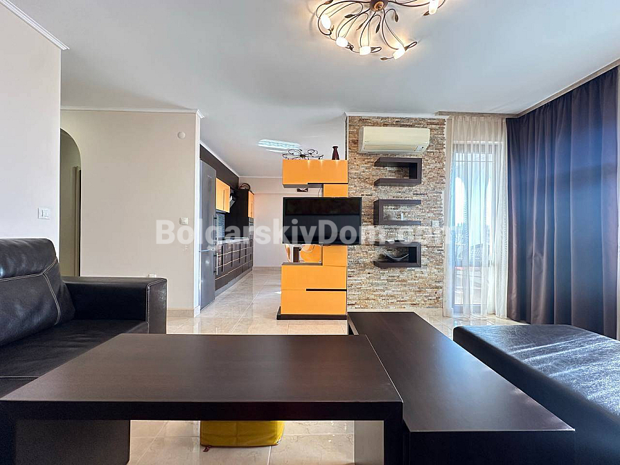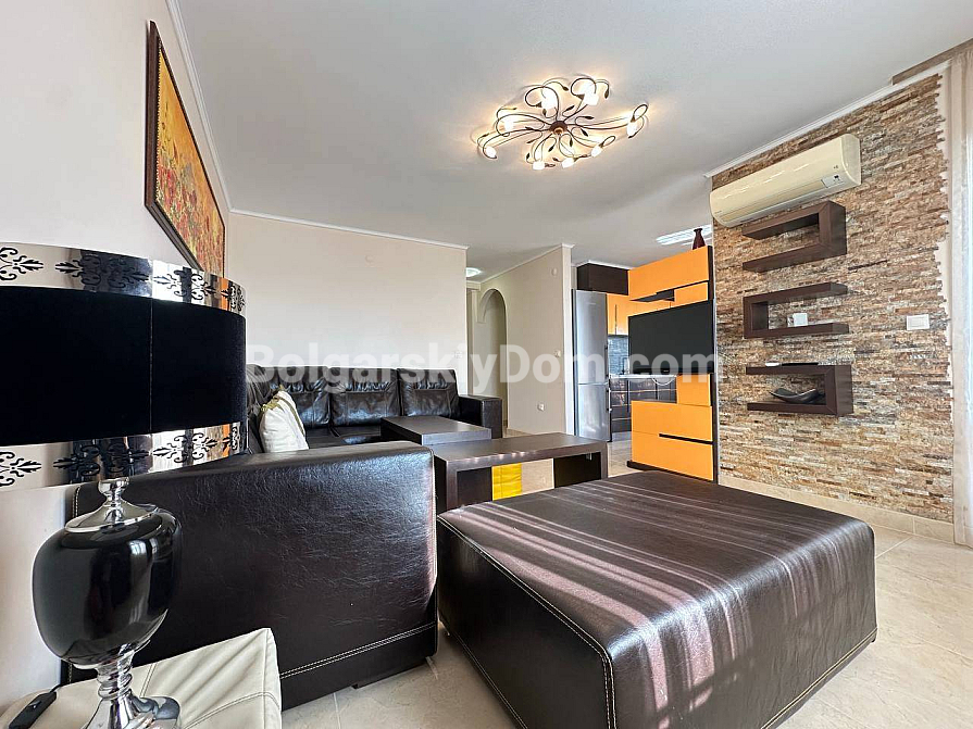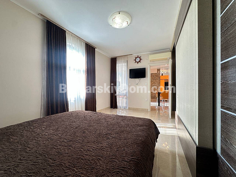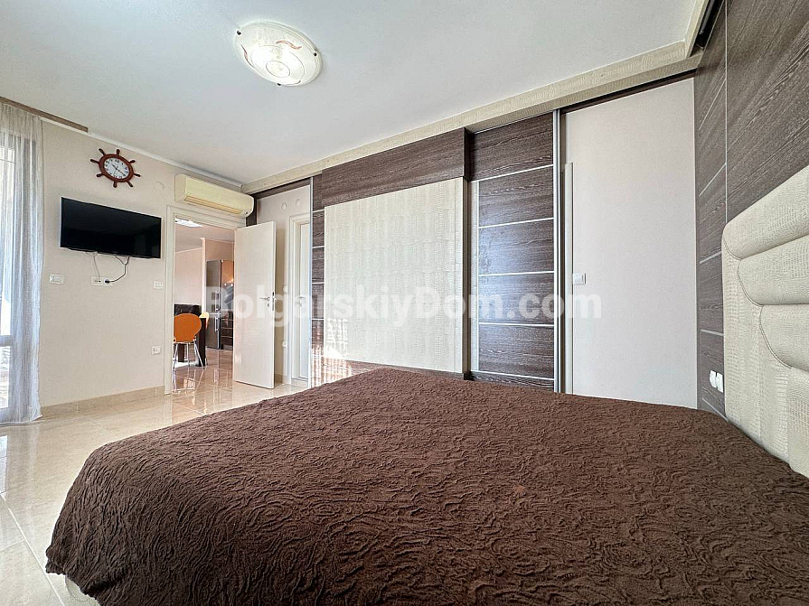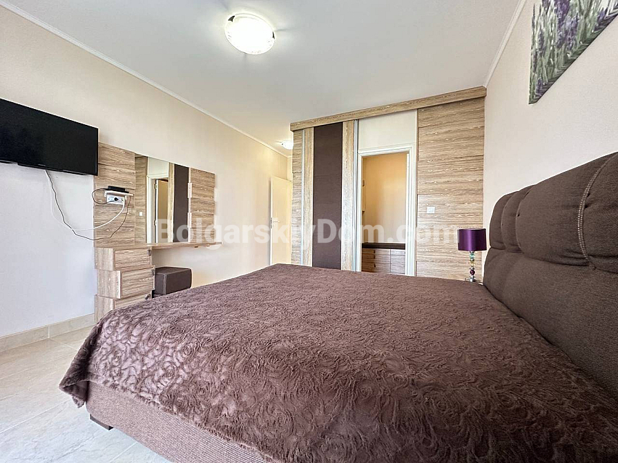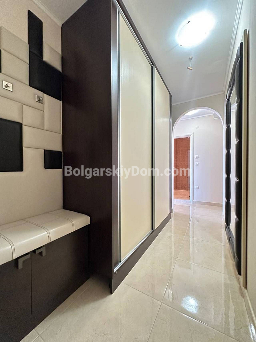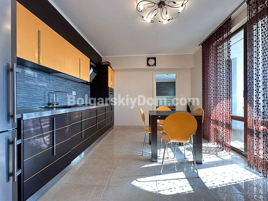 Styl, przestrzeń i atmosfera premium nad morzem – wszystko to harmonijnie łączy się w naszej nowej ofercie. Elegancki apartament z dwiema sypialniami znajduje się na piątym piętrze siedmiopiętrowego budynku w kompleksie Esteban w Nessebarze. 129 m² powierzchni, gdzie każdy detal został przemyślany dla Państwa komfortu i estetycznej przyjemności. Nowoczesny design tworzy poczucie lekkości i przestrzeni. Duży salon jest optycznie wydzielony od kuchni i części jadalnej, tworząc serce domu – miejsce, w którym przyjemnie spędza się wieczory z rodziną i przyjaciółmi. Dwie oddzielne sypialnie zapewniają maksymalną prywatność, każda z własną garderobą. Z salonu i sypialni prowadzą wyjścia na dwie przytulne tarasy. Apartament posiada dwie w pełni wyposażone łazienki z szklanymi kabinami prysznicowymi. Dzięki dwustronnemu układowi w mieszkaniu zawsze jest dużo naturalnego światła i świeżego morskiego powietrza.