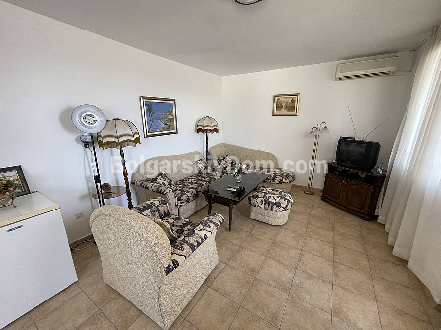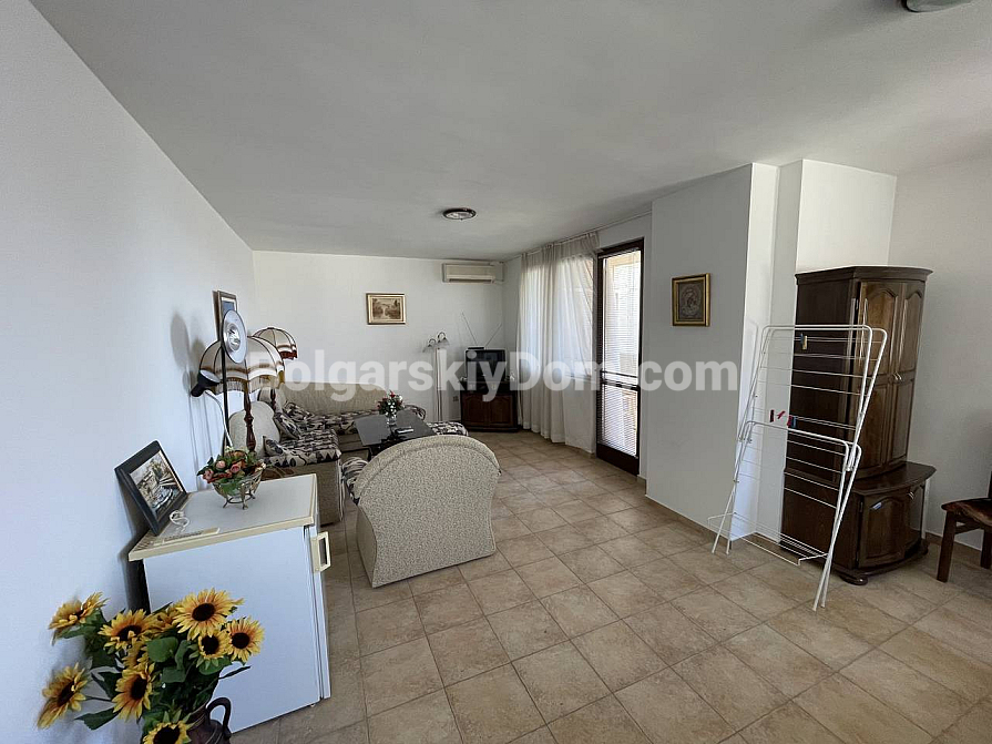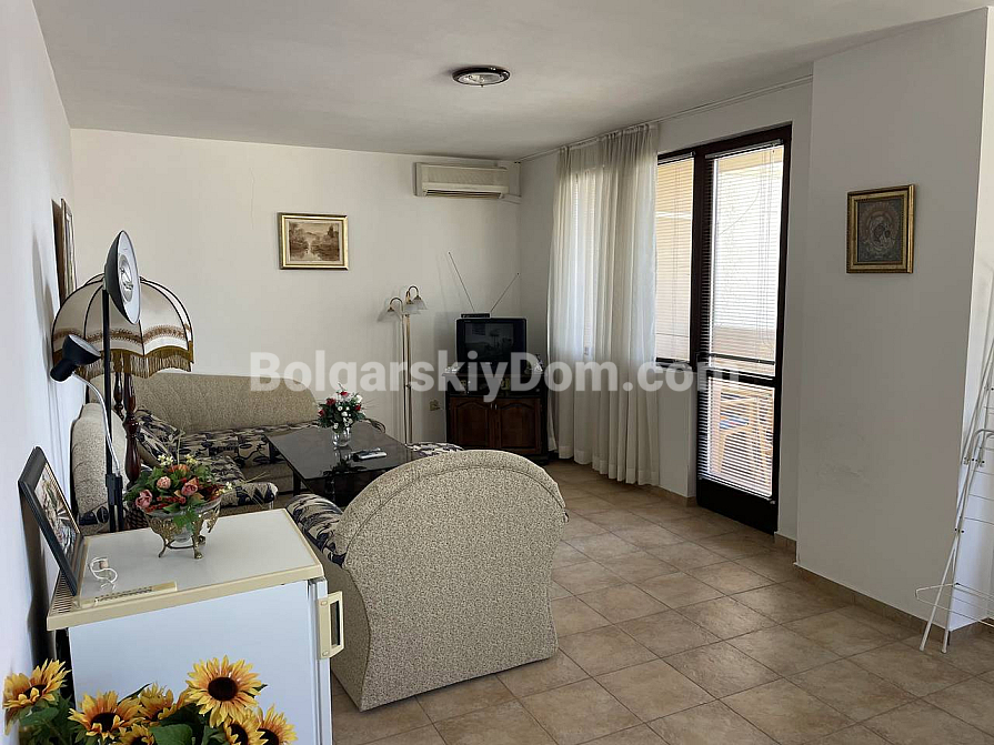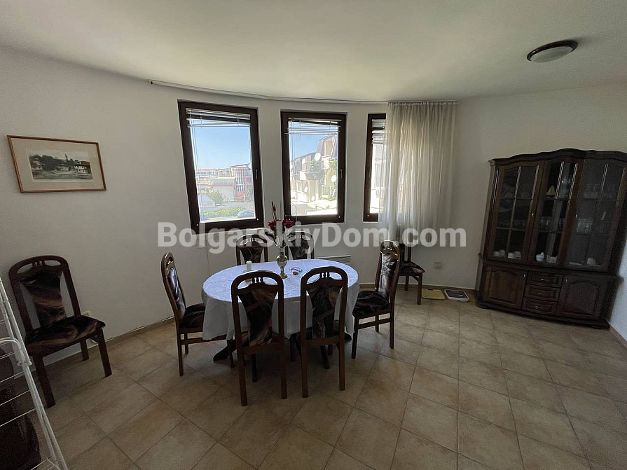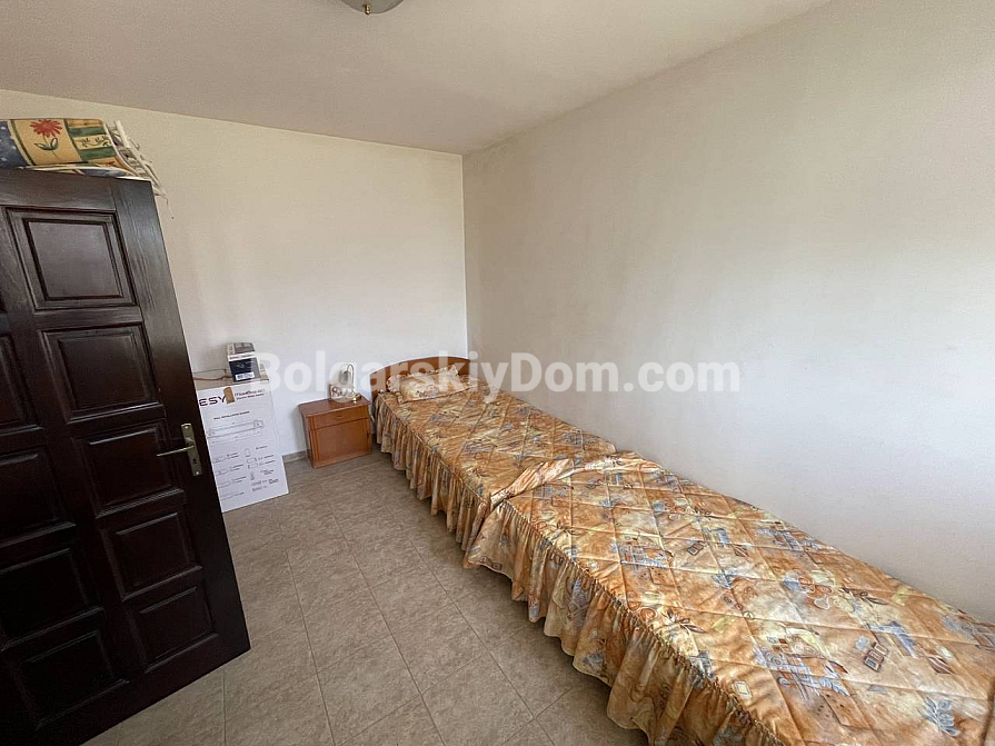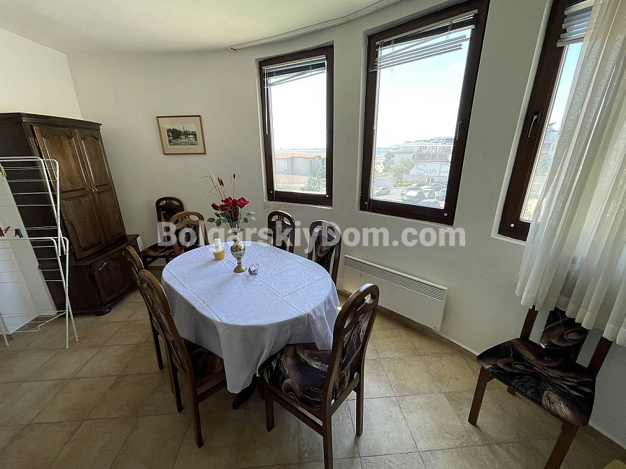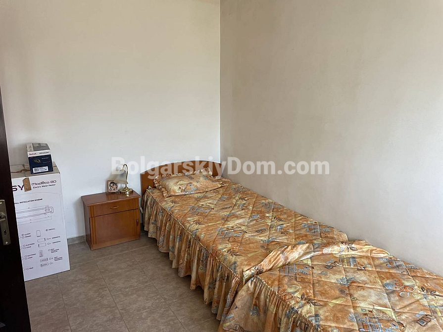 Twoje nowe, przestronne trzypokojowe mieszkanie o powierzchni 104 m² czeka na Ciebie w kompleksie Sun Palace! To wspaniała nowość w katalogu, którą warto rozważyć w pierwszej kolejności. Przytulne, w pełni gotowe do zamieszkania mieszkanie, w którym panuje prawdziwa domowa atmosfera: wnętrze utrzymane w ciepłych, delikatnych tonacjach, a każdy detal zaprojektowany z myślą o komforcie. Mieszkanie jest w pełni umeblowane i ma funkcjonalny układ: jasny salon z wygodną strefą wypoczynkową, dwie osobne sypialnie (jedna z łóżkiem małżeńskim, druga z dwoma pojedynczymi) oraz – co ważne – osobną kuchnię z oknem, wyposażoną we wszystkie niezbędne urządzenia (kuchenka, lodówka, pralka, mikrofalówka). Łazienka wyposażona jest w prysznic. Z balkonu, na który jest wyjście z sypialni, roztacza się piękny widok na morze, basen i zadbane zielone podwórze. Jak podoba Ci się taka oferta all inclusive? Zadzwoń do nas – bądź pierwszym, który obejrzy to mieszkanie!