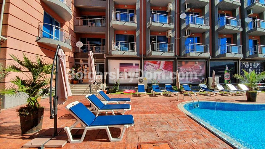 Cocoa Residence to nowoczesny, przytulny kompleks zamknięty położony w południowej części Słonecznego Brzegu. Dobrze utrzymany, zielony teren został zaprojektowany z myślą o maksymalnym komforcie mieszkańców. Kompleks oferuje pełen zakres udogodnień: basen dla dorosłych z częścią dla dzieci, nowoczesne leżaki i parasole, całoroczną ochronę, recepcję, restaurację, bar przy basenie, saunę, masaże, salon kosmetyczny, siłownię oraz sklep spożywczy w budynku. Wyjątkowym atutem kompleksu jest jego lokalizacja: w pobliżu znajdują się sklepy, supermarkety, kawiarnie i mini aquapark, a do zabytkowego miasta Nesebar jest zaledwie 1 km. Komunikacja publiczna regularnie kursuje do centrum Słonecznego Brzegu, Świętego Własu i Elenite. Roczna opłata za utrzymanie wynosi 10 euro za m².