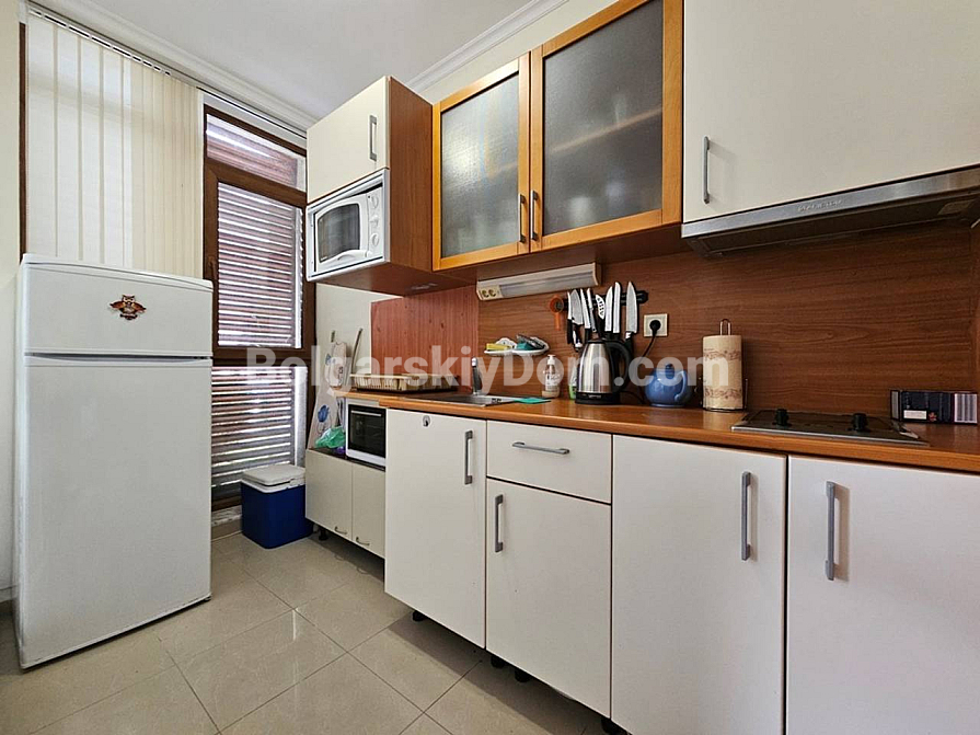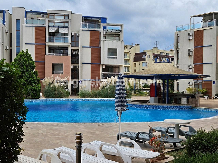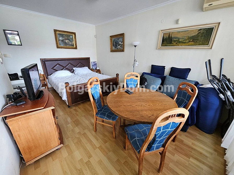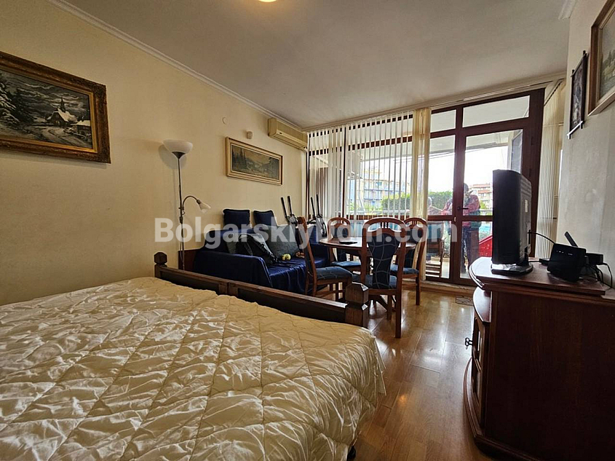 Sensacyjne nowe ogłoszenie od agencji Bolgarskiy Dom! Przestronne mieszkanie w Słonecznym Brzegu z własną komórką lokatorską i widokiem na basen! Na sprzedaż przestronny apartament jednopokojowy o łącznej powierzchni 52 m² (48,62 m² + 3,40 m² komórka lokatorska) w kompleksie Sun City 1. Główną zaletą tej nieruchomości jest posiadanie prywatnej piwnicy/komórki lokatorskiej oraz dogodna lokalizacja na parterze z widokiem na basen. Mieszkanie jest w pełni umeblowane i wyposażone w sprzęt AGD, w tym pralkę i klimatyzację. Studio jest przestronne i posiada wydzieloną część kuchenną, dzięki czemu układem przypomina pełnowymiarowe mieszkanie jednopokojowe. W oknach zamontowano zewnętrzne rolety dla cienia i prywatności. Do plaży jedynie 5 minut spacerem (około 300 metrów).