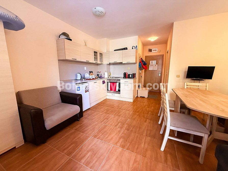 Nieruchomość wakacyjna z pełnym serwisem hotelowym, położona w odległości spaceru od morza! W sprzedaży nowość katalogowa — studio o powierzchni 37 m² w prestiżowym kompleksie Panorama Dreams w Świętym Własie. To kompaktowe mieszkanie znajduje się zaledwie 100 metrów od morza, w drugiej linii zabudowy. Sprzedawane jest w pełni umeblowane i wyposażone, dokładnie tak jak na zdjęciach. Funkcjonalny układ obejmuje przestronny salon z aneksem kuchennym i jadalnią, przytulny balkon oraz łazienkę. Dzięki doskonałemu położeniu i świetnemu stanowi, nieruchomość ta idealnie nadaje się zarówno do całorocznego zamieszkania, jak i do uzyskiwania stałego dochodu z wynajmu.