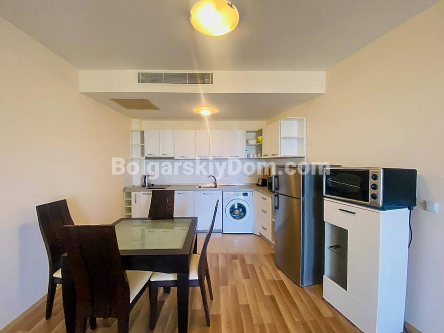 Kompleks Peter House znajduje się zaledwie 200 metrów od wybrzeża, w najbardziej centralnej i tętniącej życiem części kurortu Słoneczny Brzeg. Infrastruktura dostępna dla mieszkańców jest na najwyższym poziomie: windy, całodobowy monitoring i ochrona oraz stała konserwacja terenu. Na terenie kompleksu znajdują się trzy baseny, centrum SPA, gabinet medyczny i restauracja. W zasięgu spaceru znajduje się popularny klub nocny Cacao Beach oraz liczne sklepy i kawiarnie. Wyjątkowość tej oferty polega na niezwykle niskiej rocznej opłacie eksploatacyjnej — zaledwie 10 euro za metr kwadratowy, co w połączeniu z centralną lokalizacją i atrakcyjną ceną czyni tę nieruchomość prawdziwym unikatem.