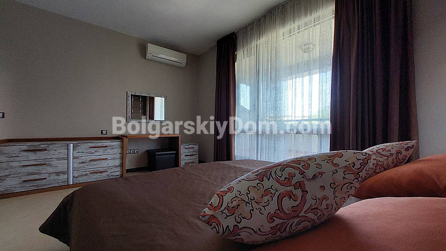 Topowa nowość tego sezonu! Prezentujemy prawdziwie stylowe i przestronne trzypokojowe mieszkanie w elitarnym kompleksie Oasis, położonym nad jednym z najpiękniejszych zatok południowego wybrzeża Morza Czarnego. Nieruchomość o powierzchni 137 m² znajduje się na czwartym piętrze i została urządzona w stylu nowoczesnej klasyki — elegancko i gustownie. Układ obejmuje jasny salon połączony z kuchnią, dwie przytulne sypialnie oraz dwie łazienki. Szczególny atut — jedna z łazienek przylega do sypialni głównej. Mieszkanie jest w pełni umeblowane i gotowe do zamieszkania. Z dwóch tarasów rozciąga się panoramiczny widok na malowniczy las.