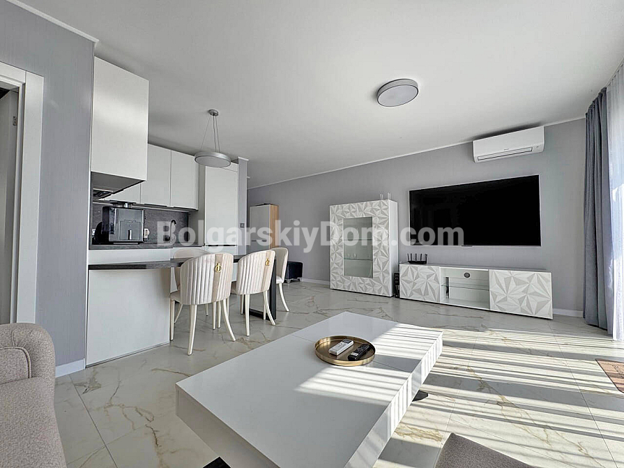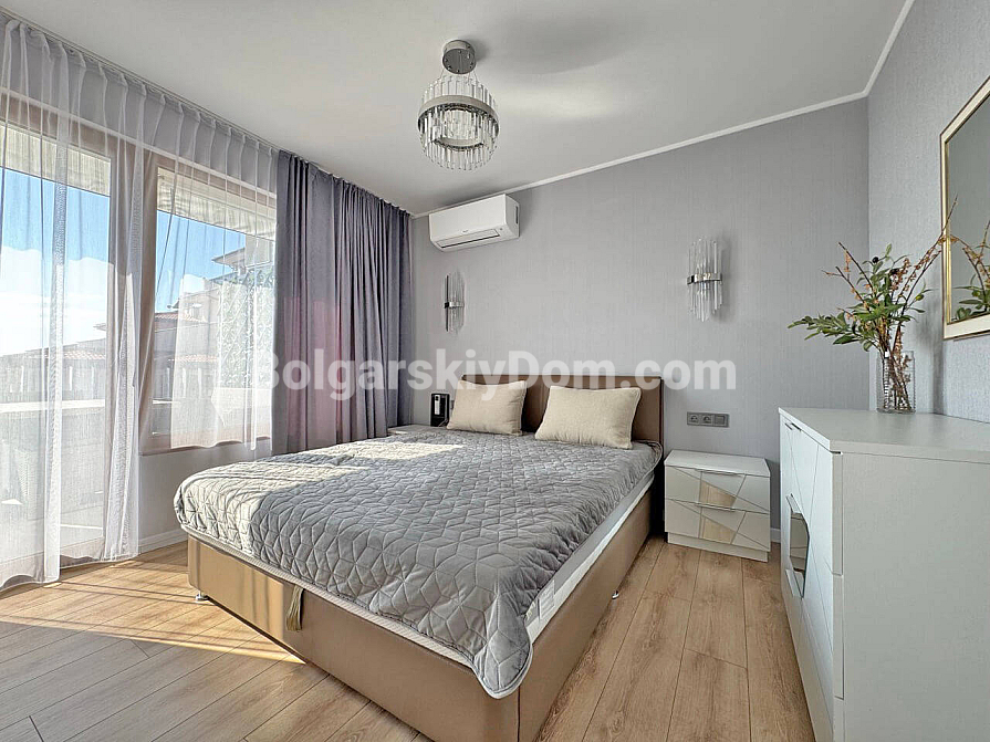 Nowy flagowy apartament pojawił się w katalogu Bolgarskiy Dom: trzypokojowe mieszkanie o powierzchni 103 m² z imponującym, bezpośrednim widokiem na morze w kompleksie Sun Coast Resort, położonym dosłownie na pierwszej linii w Świętym Własie! Mieszkanie jest w idealnym stanie, w pełni umeblowane i wyposażone. Układ jest idealny dla rodziny: przedpokój, przestronny salon połączony z kuchnią i jadalnią, dwie pełnowartościowe sypialnie, łazienka oraz balkon zaaranżowany jako strefa wypoczynku. Kupujesz gotowe do zamieszkania mieszkanie, gdzie możesz od razu cieszyć się odpoczynkiem!