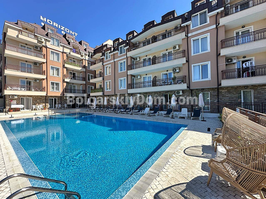 Kompleks Horizon znajduje się w zielonej i spokojnej dzielnicy Zora, zaledwie 300 metrów od morza i pięknej promenady. W pobliżu są supermarket, kawiarnia i kilka przydatnych sklepików. 2,5 km w jedną stronę — centrum Świętego Własu z całoroczną infrastrukturą. Mniej więcej tyle samo w drugą — i jesteś w samym sercu Słonecznego Brzegu. Idealne miejsce zarówno na wakacje, jak i do wygodnego mieszkania przez cały rok.