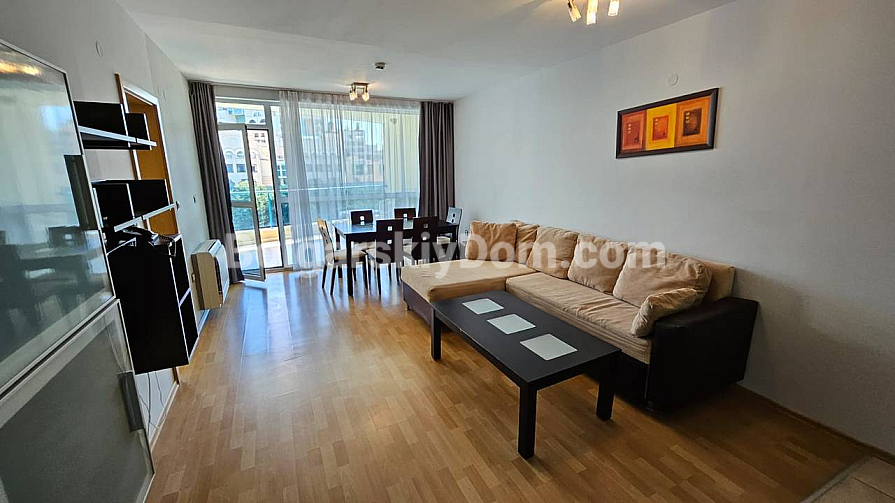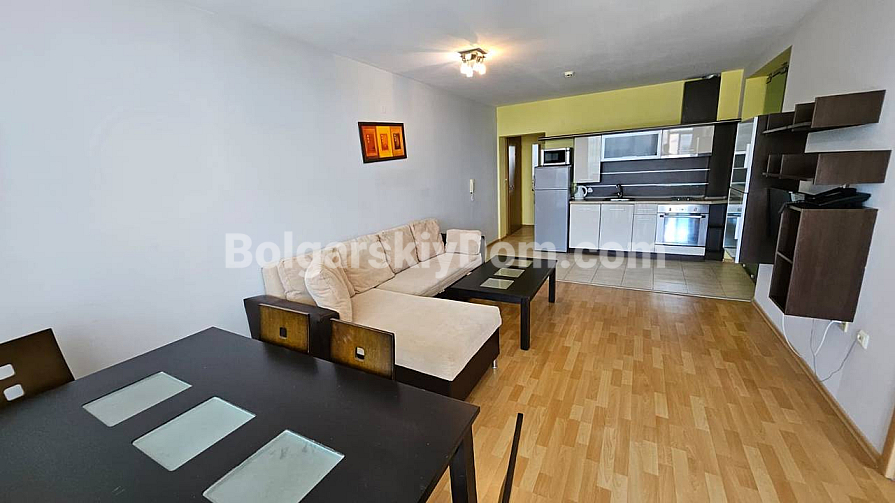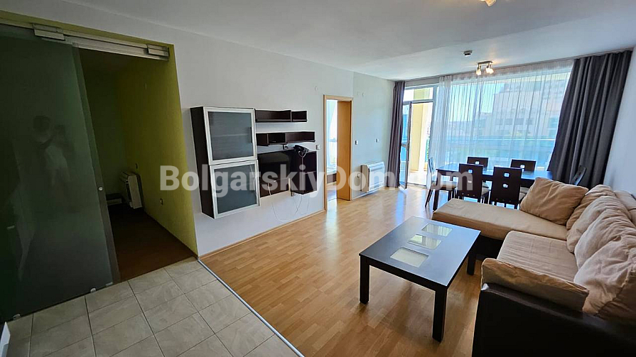 Luksusowa opcja nad morzem! Na sprzedaż przestronne mieszkanie 3-pokojowe o powierzchni 92 m² w doskonałym kompleksie Marina Holiday na balneologicznym kurorcie Pomorie. Mieszkanie znajduje się na 4 piętrze i jest sprzedawane w pełni umeblowane, w dobrym stanie. Od razu otrzymujesz gotowe mieszkanie nad morzem! Układ mieszkania zapewnia maksymalny komfort: salon połączony z kuchnią i częścią jadalną, oddzielna sypialnia, łazienka z pełną wanną oraz duży balkon, który można urządzić jako strefę relaksu. Główną zaletą jest lokalizacja: Marina Holiday znajduje się zaledwie 200 metrów od luksusowej piaszczystej plaży w Pomorie.