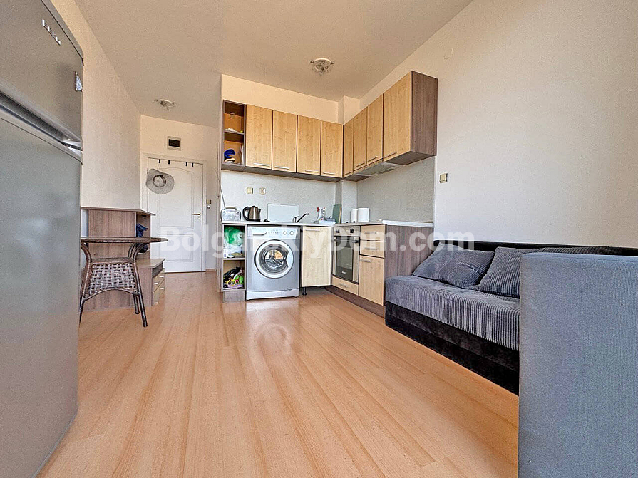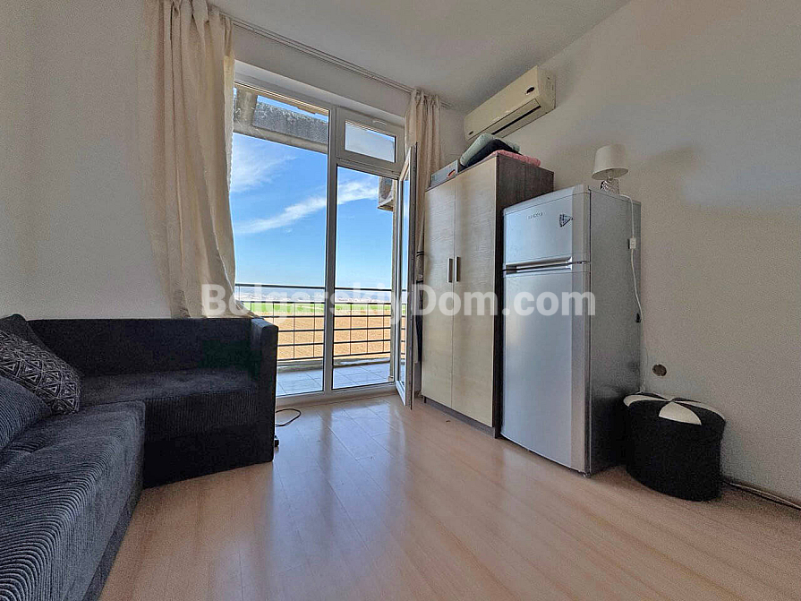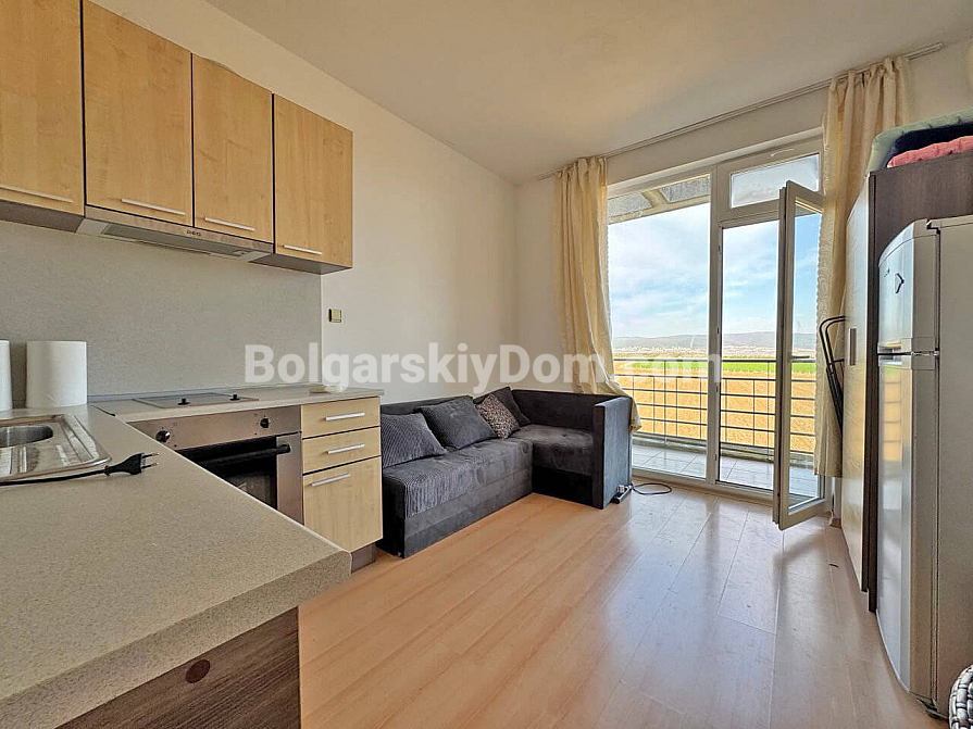 Budżetowy start do własnego mieszkania! Prezentujemy przytulne studio o powierzchni 26 m², sprzedawane z całym niezbędnym umeblowaniem i sprzętem, w kompleksie Sunny Day 5. To idealna, w pełni gotowa opcja na wakacje lub wynajem. Studio znajduje się na 4. piętrze. Wnętrze jest jasne, a balkon oferuje widok na odległe góry i równinę.