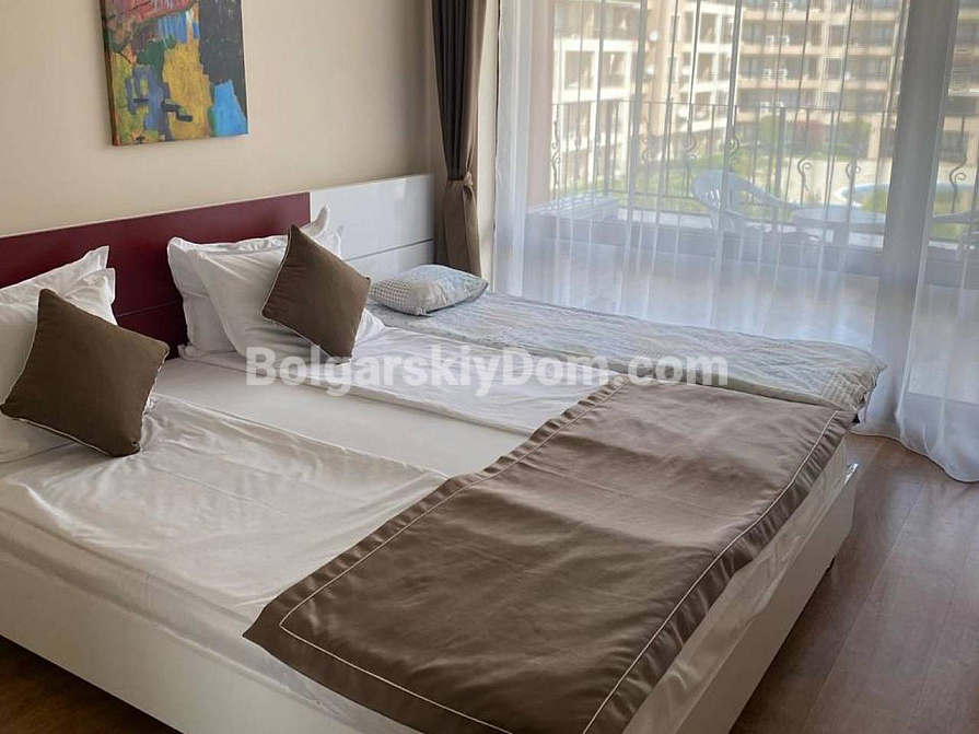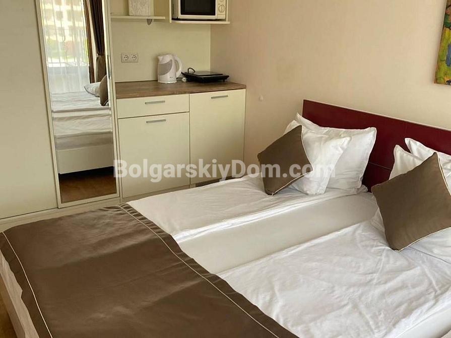 Agencja Bolgarskiy Dom prezentuje ekskluzywną ofertę na pierwszej linii: przytulne studio w kompleksie apartamentowym Premier Fort Beach. Ten apartament to idealne rozwiązanie na szybki start w biznesie najmu, ponieważ jest w pełni umeblowany i gotowy do zamieszkania. Jasne wnętrze w stonowanych barwach tworzy przyjemną atmosferę do wypoczynku: znajduje się tu wygodne łóżko dwuosobowe, funkcjonalny aneks kuchenny z kuchenką mikrofalową oraz nowoczesna łazienka z kabiną prysznicową. Z balkonu roztacza się miły widok na wewnętrzny dziedziniec kompleksu, idealny na poranną kawę. Powierzchnia 39 m², do morza jedna minuta spacerem.