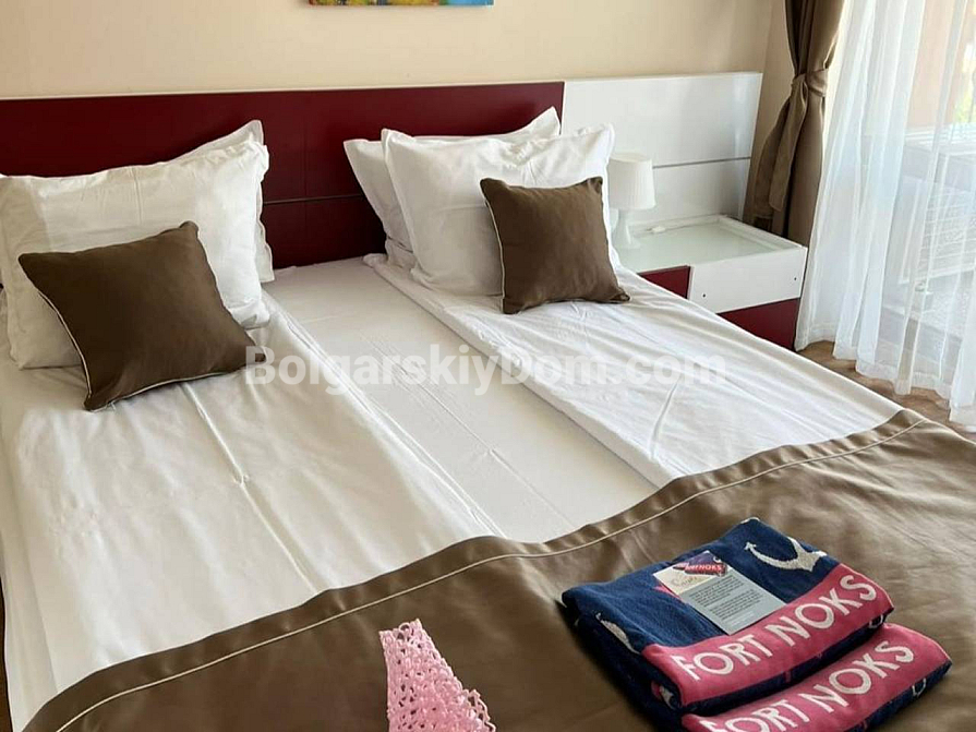 Kompleks położony jest w najbardziej prestiżowej części Świętego Własu, bezpośrednio przy pierwszej linii morza, zaledwie 50 metrów od szerokiej i czystej plaży. Premier Fort Beach jest częścią rozległego Fort Noks Resort, co zapewnia dostęp do wielu udogodnień, w tym basenów, restauracji i barów. Do centrum Świętego Własu oraz słynnej mariny Marina Dinevi jest tylko 2 km, a w odległości spaceru (300 m) znajduje się duży supermarket ze świeżymi produktami oraz inne typowe udogodnienia kurortowego miasta.