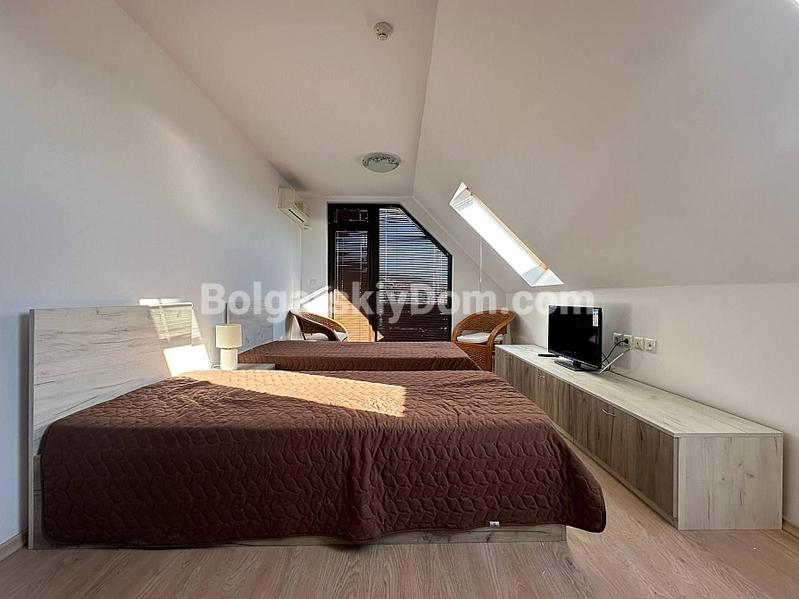 Kompleks mieszkalny Raduga 2 posiada zadbaną infrastrukturę i zapewnia komfortowe warunki do życia. Roczna opłata eksploatacyjna wynosi jedynie 550 euro, co jest bardzo korzystną ceną jak na tę lokalizację. Basen, parking, bar, kawiarnia, plac zabaw, miejsce do grillowania — wszystko znajduje się na terenie kompleksu. Nie przegap okazji zakupu umeblowanego mieszkania z widokiem na morze i gotowymi dokumentami!