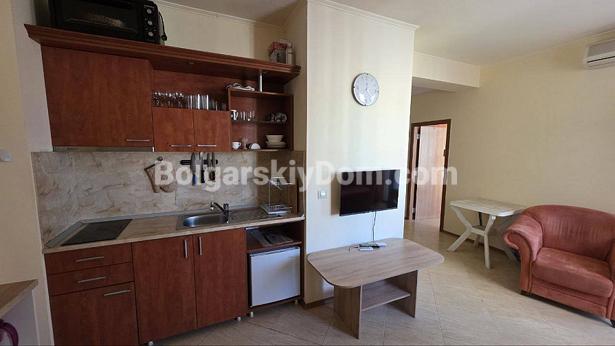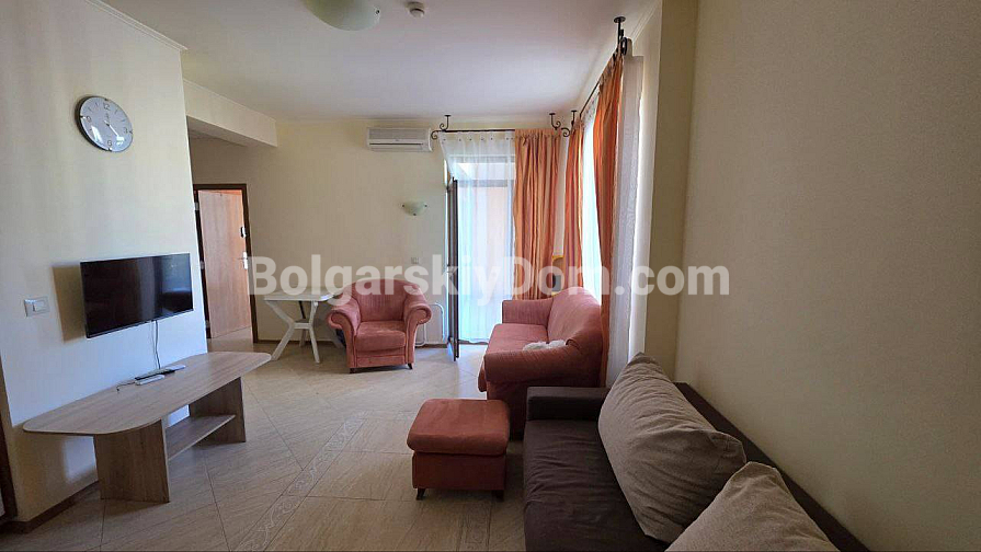 Uwaga, doskonała cena! Agencja Bolgarskiy Dom prezentuje przestronny apartament dwupokojowy o powierzchni 72 m² w pięknym, niewielkim kompleksie Palazzo w Słonecznym Brzegu. Apartament znajduje się na 4. piętrze sześciopiętrowego budynku i jest sprzedawany w pełni umeblowany, gotowy do zamieszkania. To idealna inwestycja, ponieważ cena wynosi mniej niż 1000 euro za metr kwadratowy!