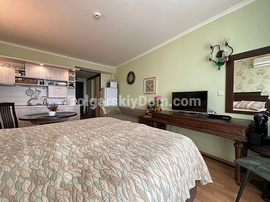 Agencja Bolgarskiy Dom prezentuje! Przygotuj się na ofertę, która naprawdę może odmienić Twoje życie. Na sprzedaż — ekskluzywne studio z bezpośrednim, oszałamiającym widokiem na morze, w samym centrum luksusu: Grand Hotel Sveti Vlas. Ten apartament na 5. piętrze to perfekcyjnie przygotowany, gotowy produkt w nienagannym stanie. Ciepłe odcienie, stylowy wystrój, funkcjonalny aneks kuchenny oraz — przede wszystkim — panoramiczny taras, z którego morski krajobraz dosłownie wchodzi do Twojego pokoju! To idealny aktyw dla inwestycji o wysokiej stopie zwrotu, z gwarantowanym potencjałem wzrostu i natychmiastowym dochodem z najmu. Powierzchnia — 45 m², a nasi agenci już czekają na Twój telefon!