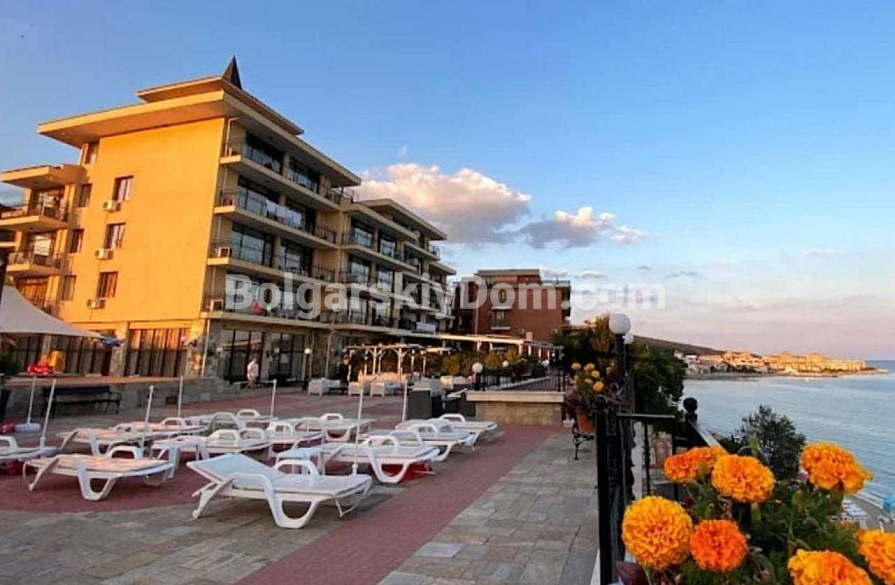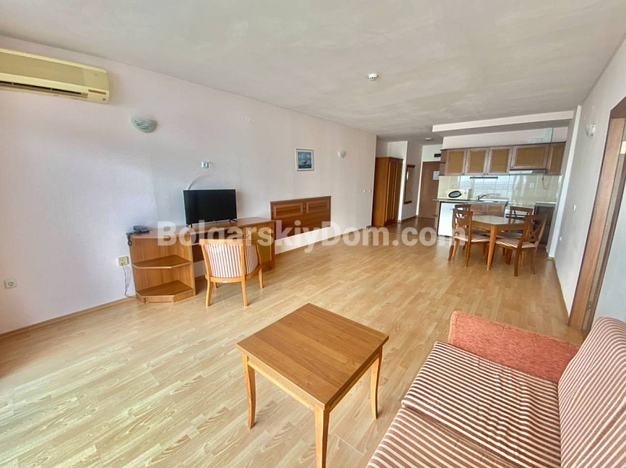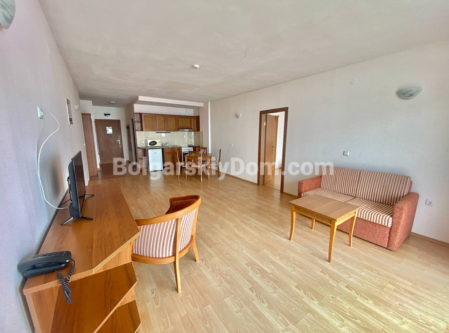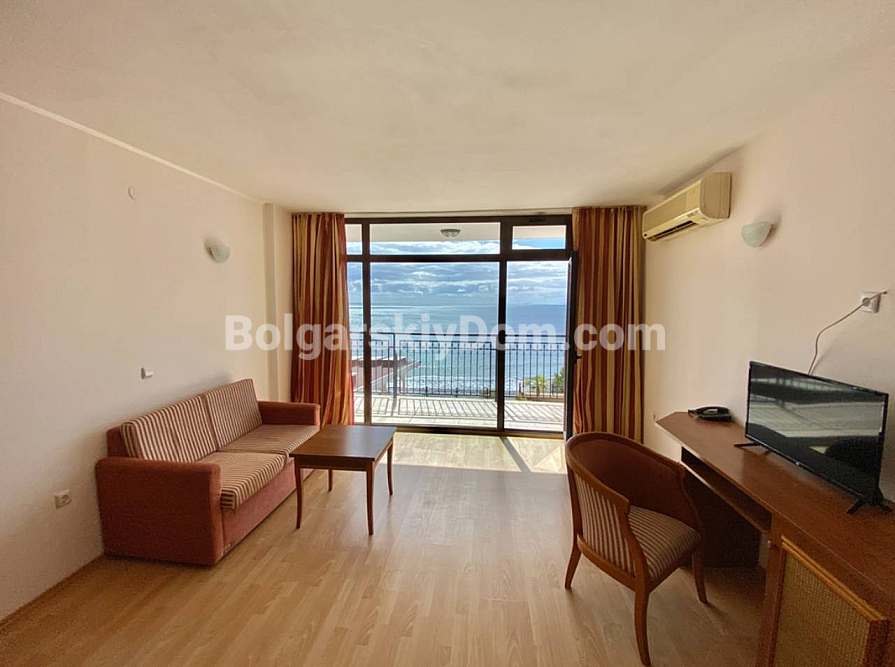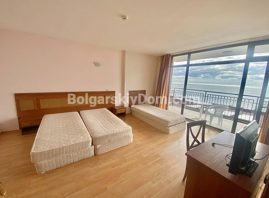 Na pierwszej linii pojawił się apartament-rezydencja z przepięknym widokiem na morze! Zespół Bolgarskiy Dom prezentuje dwupokojowe mieszkanie o powierzchni 100 m² w aparthotelu Tiva del Mar. Apartament znajduje się na wysokim, 7. piętrze od strony morza, zapewniając szeroki panoramiczny widok na Stare Nessebar i całą zatokę Słonecznego Brzegu. Układ obejmuje przestronny salon i sypialnię, a także duży taras skierowany na południe. W cenę wliczone są meble, sprzęt AGD oraz pomieszczenie gospodarcze o powierzchni 4 m². Tutaj docenisz świeże, górsko-morskie powietrze oraz wygodę centralnej ciepłej wody, która jest dodatkowym atutem.