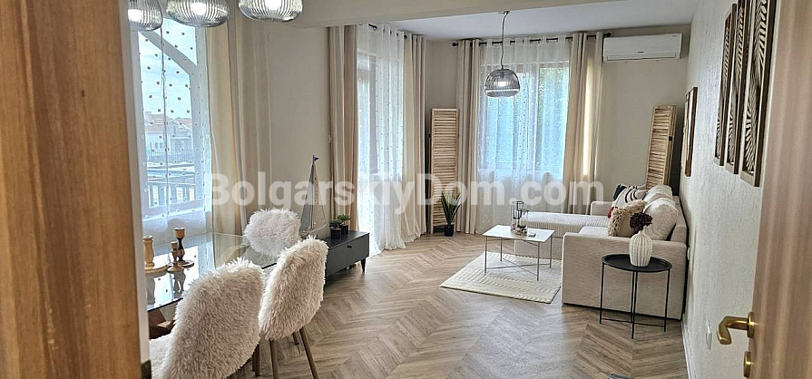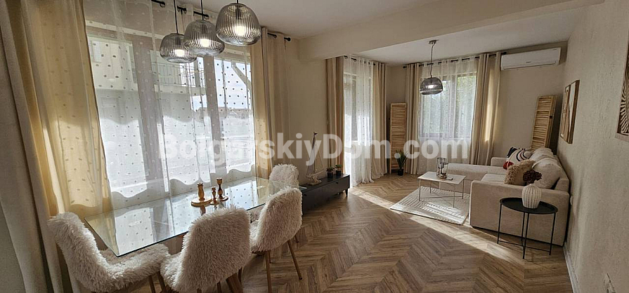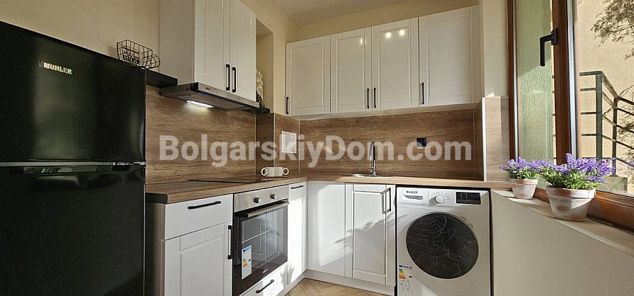 Uwaga: doskonała nieruchomość z zerowymi kosztami operacyjnymi w strefie górsko-leśnej! Agencja Bolgarskiy Dom prezentuje przestronny trzypokojowy apartament o powierzchni 87 m² w kompleksie Green Village, położonym w przytulnej miejscowości wypoczynkowej Kosharitsa. Mieszkanie znajduje się na parterze, co zapewnia bezpośrednie wyjście na przyjemne patio i balkon. Układ jest funkcjonalny: dwie sypialnie oraz – co wygodne dla rodziny – dwie pełne łazienki. Wnętrze zostało urządzone w uniwersalnym stylu i delikatnych odcieniach, a mieszkanie znajduje się w znakomitym stanie. Przestrzeń doskonale sprawdzi się zarówno na wypoczynek, jak i do stałego zamieszkania.