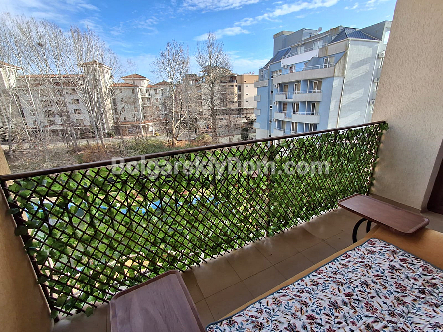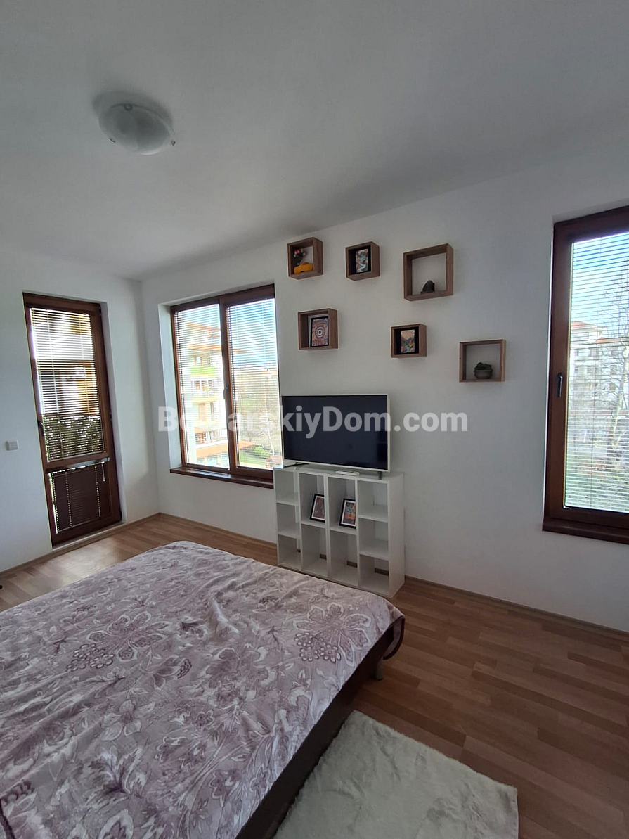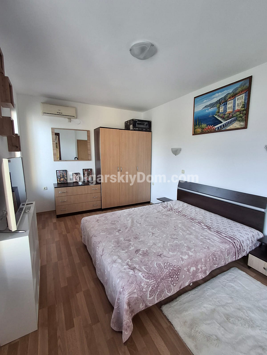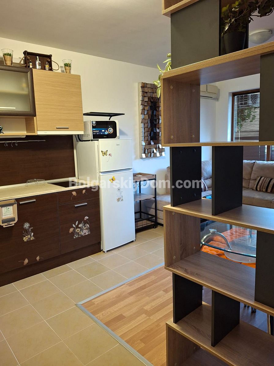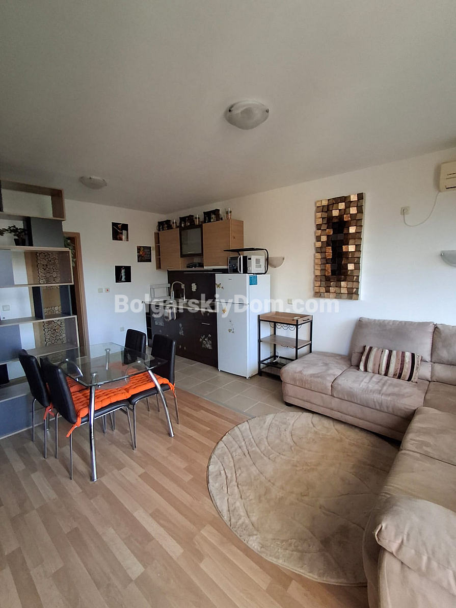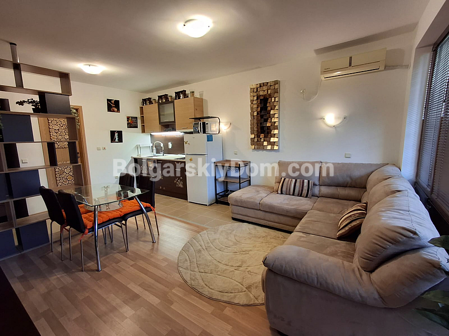 Uwaga, lot w centralnej lokalizacji z minimalną opłatą serwisową! Chcesz posiadać nieruchomość w samym sercu Słonecznego Brzegu, płacąc przy tym jak najmniej za utrzymanie? Zespół agencji Bolgarskiy Dom wystawił na sprzedaż dwupokojowy apartament o powierzchni 66 m² w kompleksie Diamond Bay. Znajduje się na komfortowym 4. piętrze (budynek z windą). Wewnątrz czeka funkcjonalna przestrzeń: jasne studio z aneksem kuchennym, osobna sypialnia oraz przestronny taras do relaksu. Nieruchomość jest w pełni umeblowana i wyposażona w sprzęty, co zapewnia gotowość do natychmiastowego wynajmu lub zamieszkania.