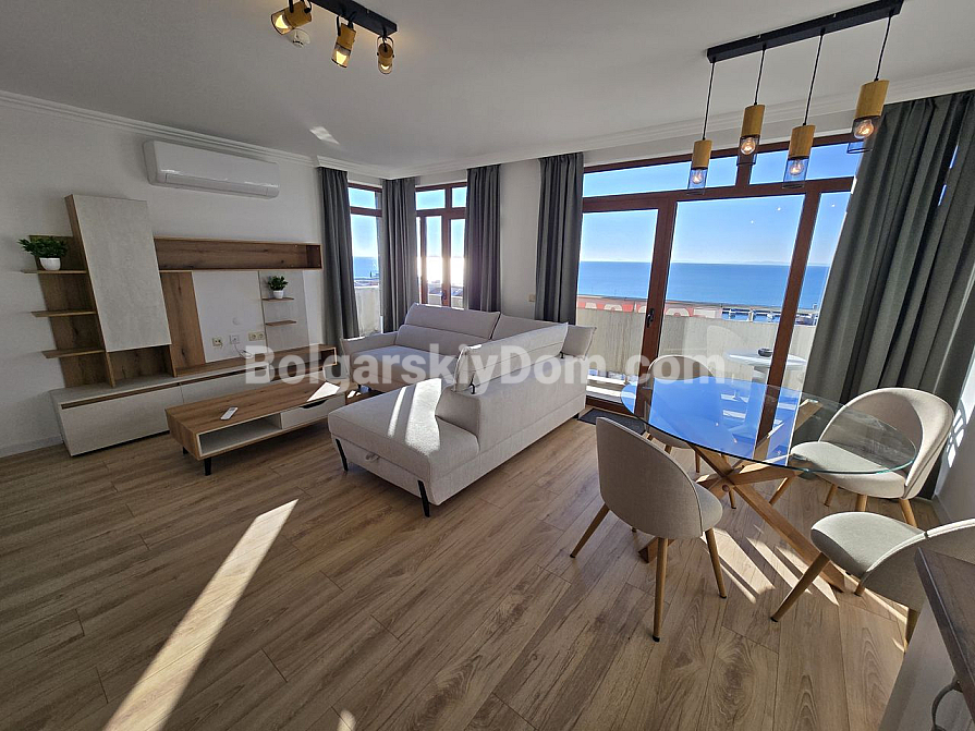 Zespół agencji Bolgarskiy Dom znalazł dla Ciebie prawdziwy diament rynku wtórnego! To dwupokojowy apartament o powierzchni 106 m² w kompleksie Lazur 4. Głównym atutem tej nieruchomości są panoramiczne okna od podłogi do sufitu, które wypełniają przestrzeń światłem i oferują wspaniały widok na morze. Wnętrze urządzone jest w stylu minimalistycznym: nic zbędnego, tylko nowoczesne linie i komfort. Wygodne czwarte piętro sześciopiętrowego budynku, gotowe do oglądania i sprzedaży!