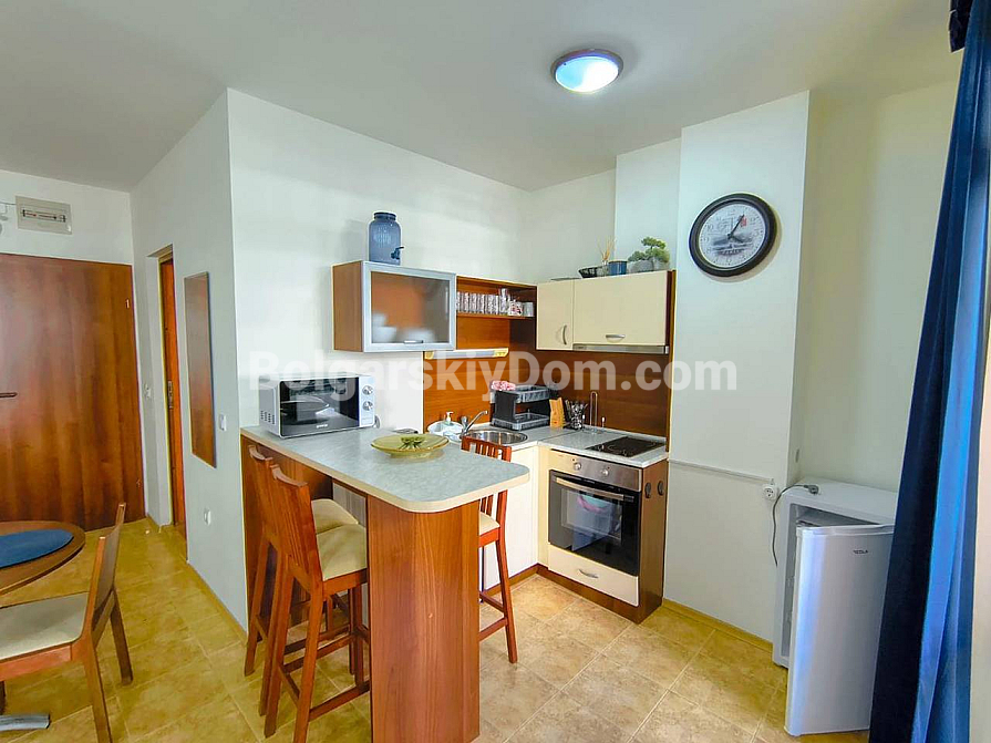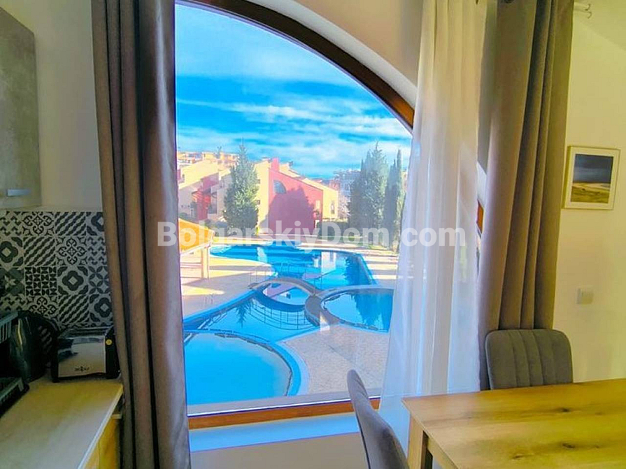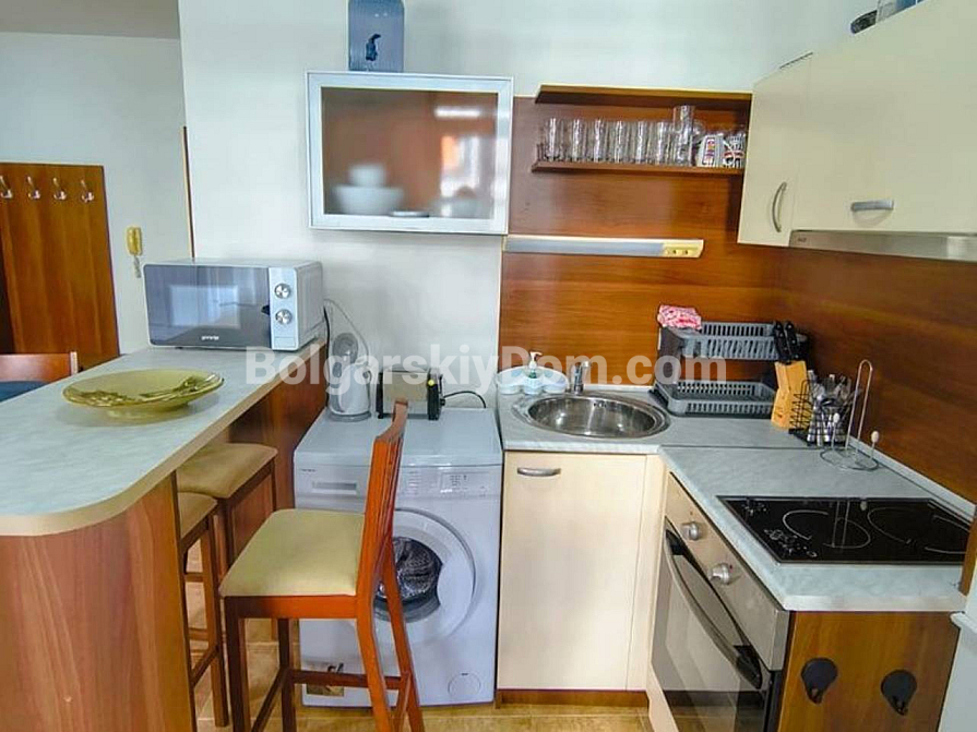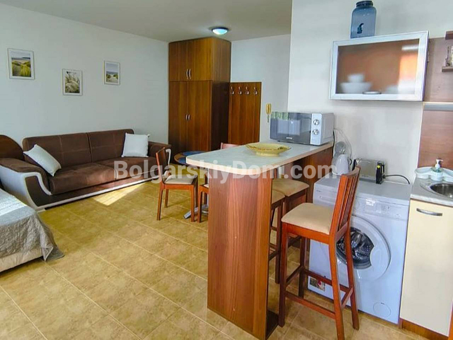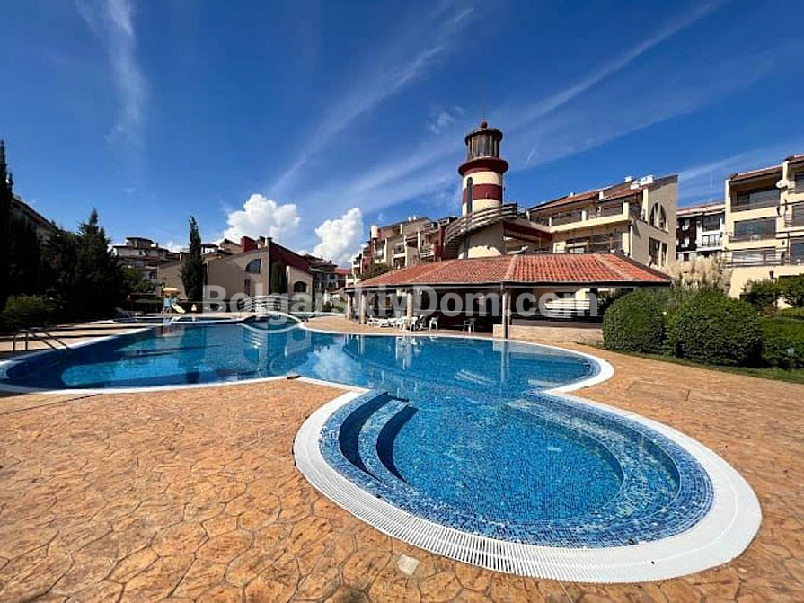 Nowa, bardzo atrakcyjna oferta inwestycyjna od Bolgarskiy Dom! W naszym katalogu pojawiła się nowa, wyjątkowo opłacalna kawalerka w prestiżowym kompleksie „Morski Far”. Apartament o powierzchni 48 m² znajduje się na 2. piętrze i wychodzi na basen. Dzięki takiej powierzchni studio jest funkcjonalnie zaplanowane, przestronne i przytulne. Mieszkanie sprzedawane jest w pełni umeblowane i wyposażone w sprzęt AGD — gotowe do natychmiastowego zamieszkania.
