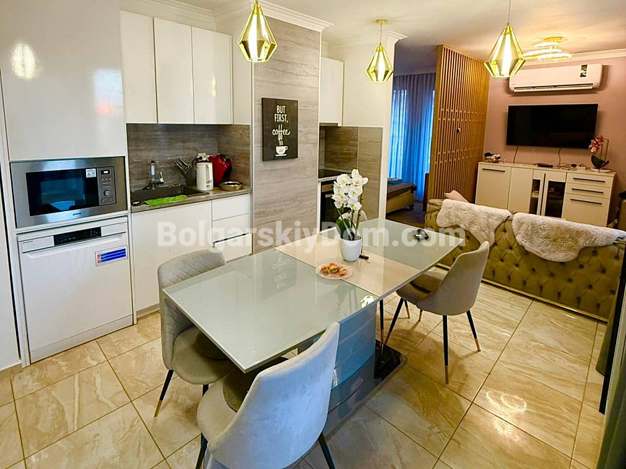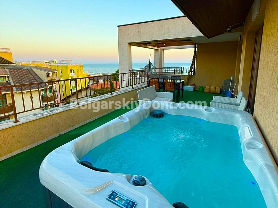Topowa lokalizacja i zachwycający widok na morze prosto z okien! Wśród najbardziej prestiżowych ofert Bolgarskiy Dom znajduje się ten wyjątkowy penthouse. Prezentujemy luksusowy apartament w Porto Paradiso (Święty Włas), kompleksie o nowoczesnej, śródziemnomorskiej architekturze, położony na ostatnim piętrze i oferujący spektakularny panoramiczny widok na morze, góry oraz stare miasto Nesebyr. Powierzchnia apartamentu wynosi 115 m². Lokal znajduje się na 6., najwyższym piętrze i wyróżnia się doskonałym wykończeniem. W środku: przestronny salon z kuchnią, oddzielna sypialnia oraz designerska łazienka z ekskluzywną kabiną prysznicową. Największym atutem jest ogromny taras wyposażony we własne jacuzzi — idealne miejsce na podziwianie wschodów i zachodów słońca. Apartament sprzedawany jest w pełni wyposażony w wysokiej jakości, drogie meble oraz cały niezbędny sprzęt.