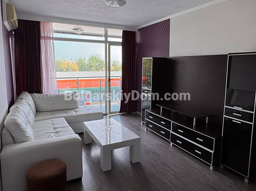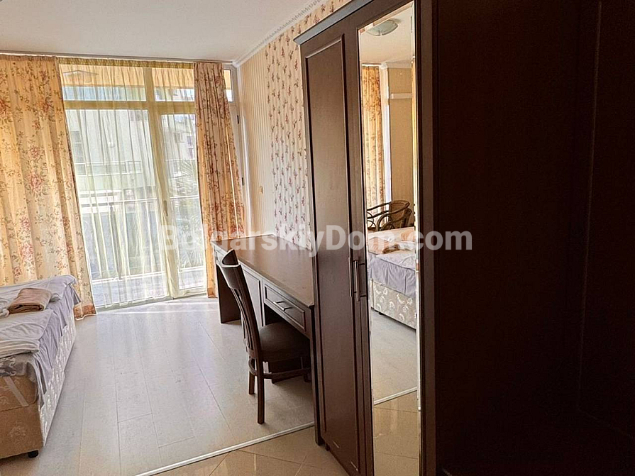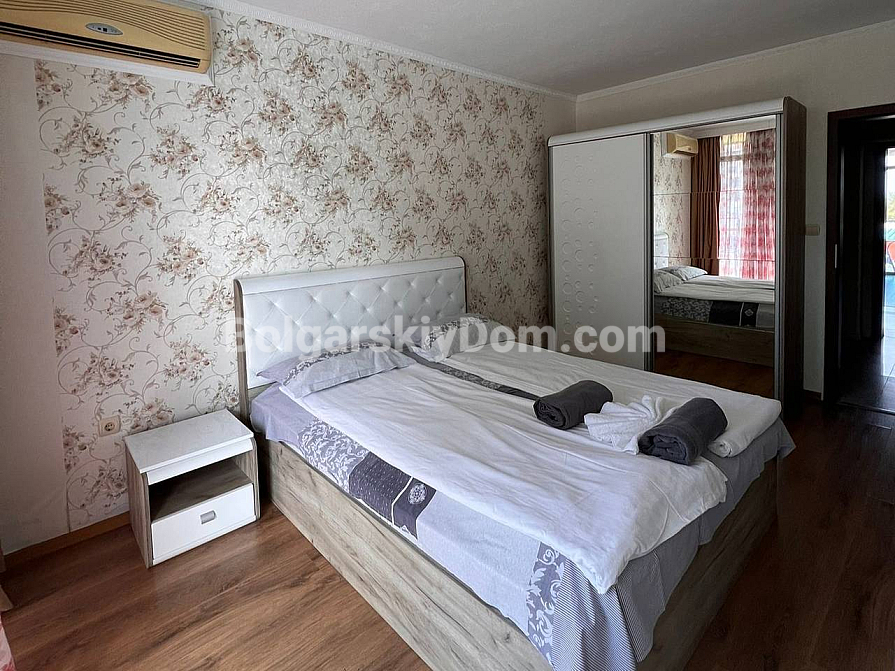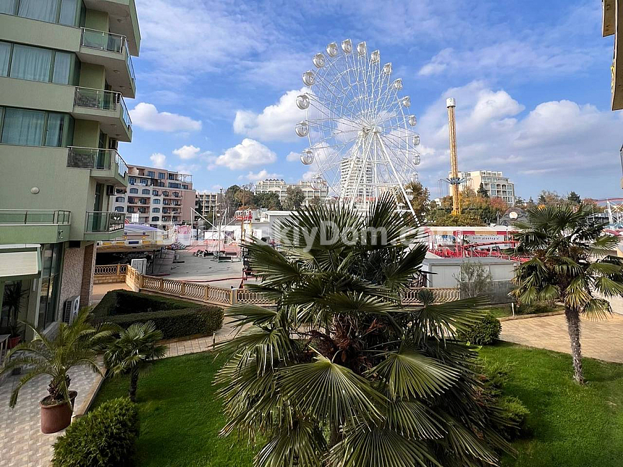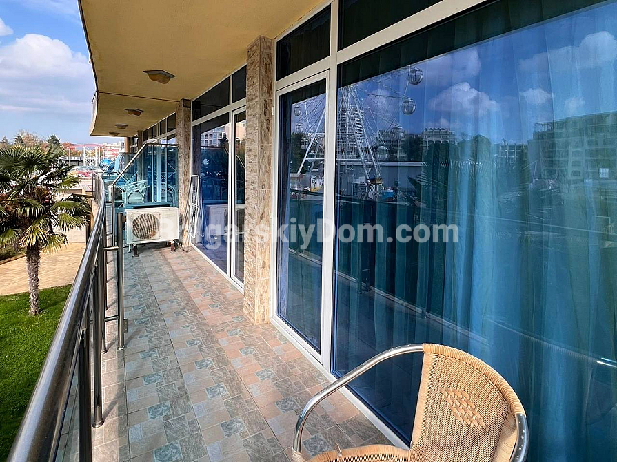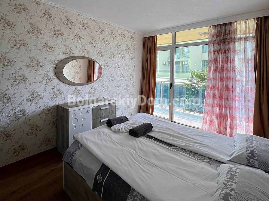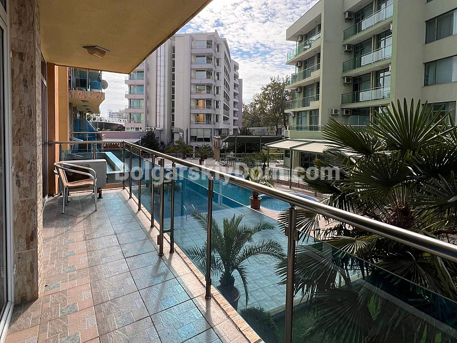 Nowa oferta w kategorii apartamentów z widokiem! Wśród najkorzystniejszych propozycji Bolgarskiy Dom w Słonecznym Brzegu znajduje się ten przestronny trzypokojowy apartament. Prezentujemy nieruchomość o powierzchni 101 m² w kompleksie Gallery 2. Mieszkanie na 2. piętrze charakteryzuje się doskonałą funkcjonalnością: jasny salon z kuchnią, dwie oddzielne sypialnie oraz dwie w pełni wyposażone łazienki z kabinami prysznicowymi. Najważniejszym atutem są dwie przestronne tarasy! Jeden z widokiem na basen i dziedziniec wewnętrzny, drugi — na ulicę i częściowy widok na morze.