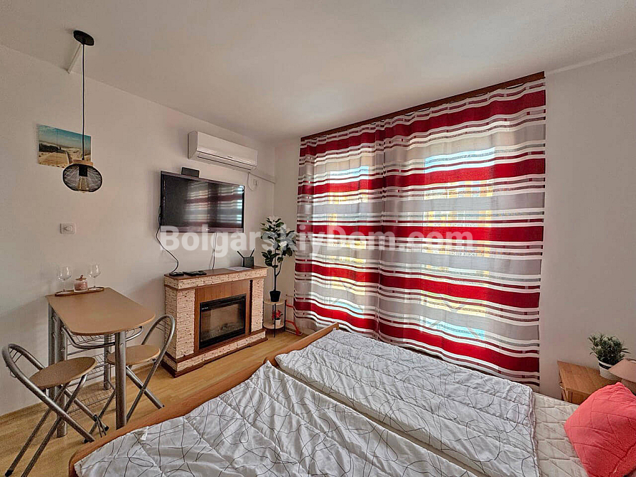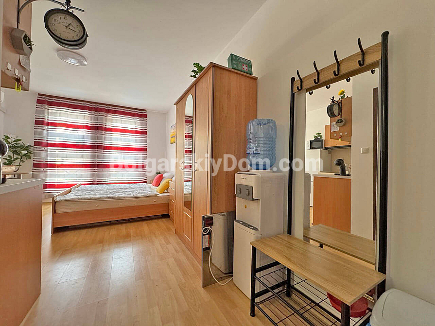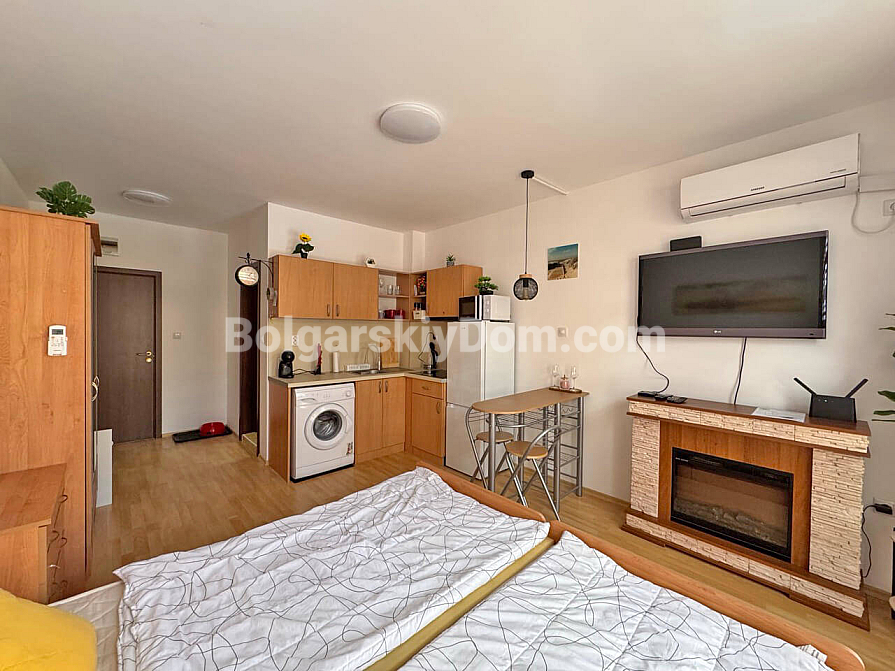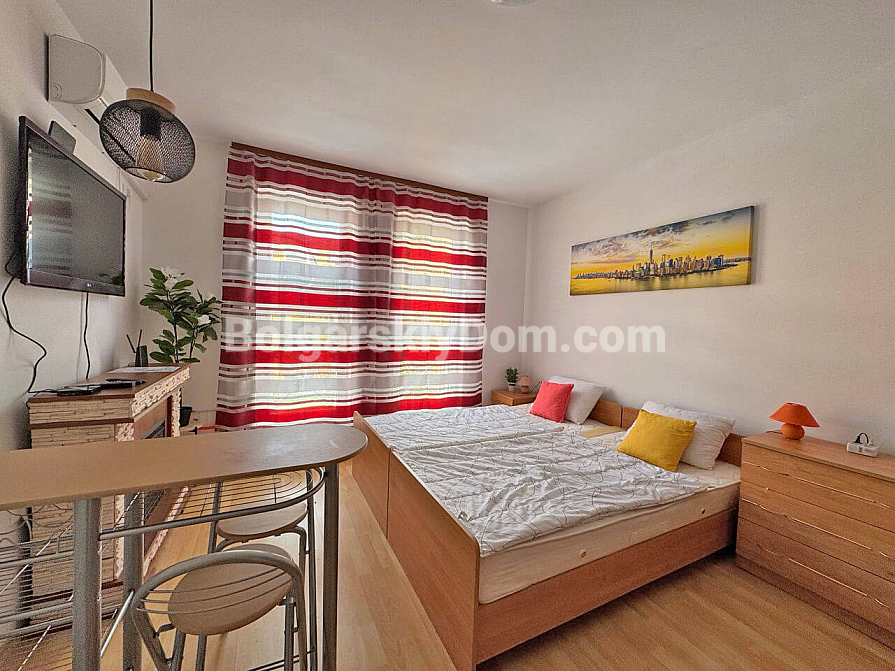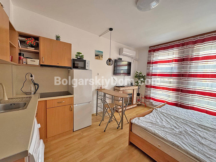 Za stosunkowo niewielką roczną opłatę w wysokości 580 EUR otrzymujesz niezwykle bogatą infrastrukturę: sklepy, restauracje, całodobową ochronę i parking, teren z sześcioma (!) basenami, kortami tenisowymi, boiskiem piłkarskim oraz własną siłownią. Kompleks znajduje się w spokojnej części kurortu, a problem odległości do plaży (4 km) został rozwiązany dzięki wygodnemu autobusowi kursującemu dla właścicieli do Słonecznego Brzegu. To propozycja dla tych, którzy chcą maksymalnej infrastruktury za minimalne pieniądze i nie chcą przepłacać za pierwszą linię. To opłacalna, bardzo płynna oferta. Nie zwlekaj: zapytaj o szczegóły i zarezerwuj studio, które zwróci się w zaledwie kilka sezonów!