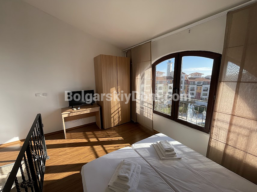 Marina Cape w Aheloy to autonomiczne mini-miasto z unikalną architekturą i spokojną atmosferą. Posiada ogrodzoną posesję, własne baseny, restauracje i tereny spacerowe, co czyni je idealnym schronieniem od hałasu większych kurortów. Opłata serwisowa w wysokości 12 € za m² w pełni uzasadnia poziom obsługi i utrzymanie terenu przez cały rok.