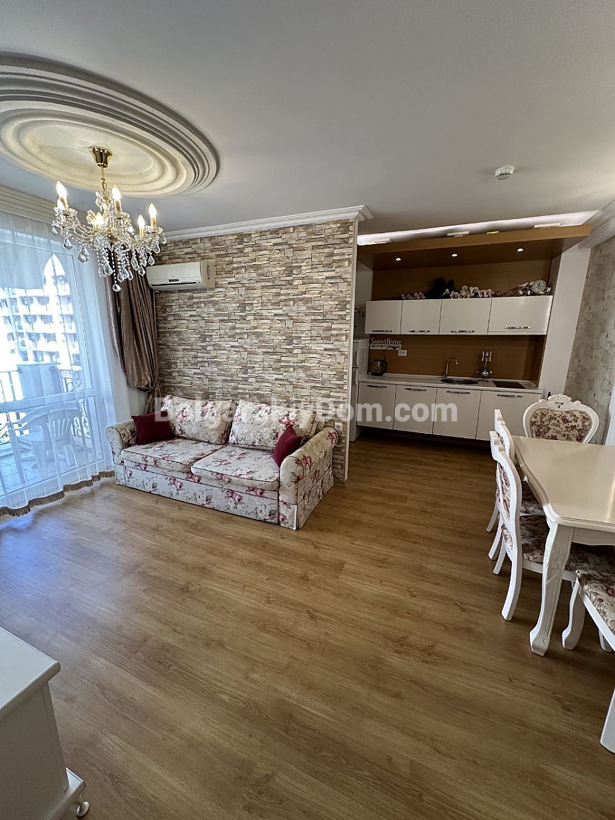 Szukasz nieruchomości, która jest warta każdej zainwestowanej złotówki? W zaktualizowanym katalogu Bolgarskiy Dom znajdziesz doskonałe dwupokojowe mieszkanie w kompleksie Sweet Home 3, położonym w samym centrum Słonecznego Brzegu. Powierzchnia 64 m², 4. piętro. Stan apartamentu jest znakomity. Mieszkanie jest w pełni umeblowane i wyposażone we wszystkie niezbędne sprzęty. Bez dodatkowych nakładów – możesz od razu czerpać dochód z wynajmu lub wprowadzić się z własnymi rzeczami!